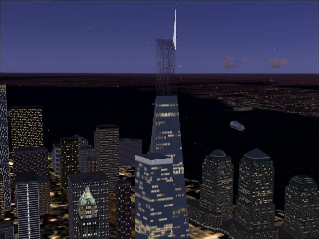 FS2004 New World Trade Centre. Having gotten tired of looking at Lower Manhattan in its current dismal state and not wanting to look at ghosts during approach, I decided to take a crack at the New World Trade Center. This package contains the first two buildings to be completed at Ground Zero. These are not fictional, these are the actual design for the NWTC. They are as accurate as I could make them without going out of my way too much. John Townsend. 359K