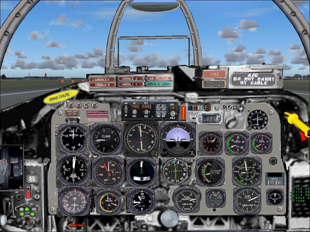 FS2004 North American F-100 Super Sabre USAF. The model features reflective metallic skin, very detailed moving parts, such as all flight controls, steerable nose wheel, spinning wheels, animated canopy, rotating pilot’s head on rudder command, lighted engine exaust advancing the throttle. The near photographic panel has been created from scratch, including the most part of the gauges created by the authors. Included in this model there is also a very simple Virtual Cockpit, with working essential gauges and animated flight controls. Capt. I. D’Attomo Capt. G.Quai. 3.8MB