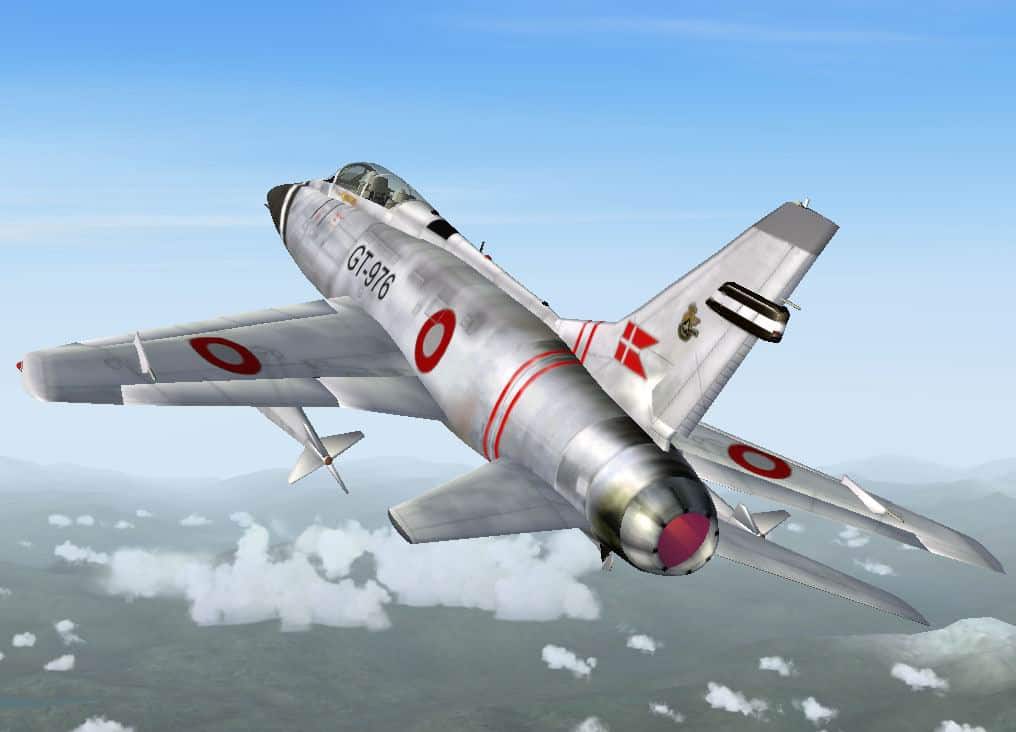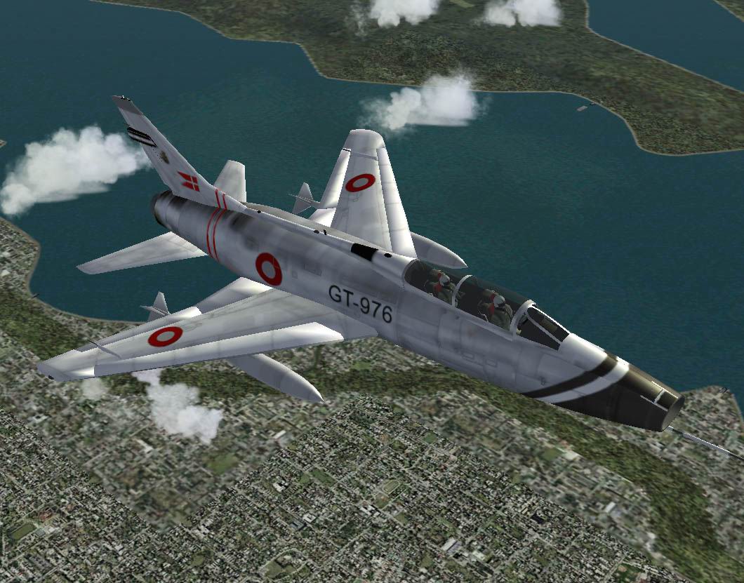 FS2004 North American F-100F Royal Danish Airforce Textures and modifications by Claus Vendelboe Holmberg ; requires the F-100F by Kazunori Ito here. The F-100F was essentially an F-100D stretched for two crewmembers. Denmark received 48 single-seaters and ten two-seaters from July 1959 onwards. In the early 1980’s they were replaced by F-16A Fighting Falcons. A third of the Royal Danish Air Force’s fleet of Super Sabres were lost in accidents, mirroring the types poor safety record in USAF service. An F-100D can be seen guarding the gates at Skrydstrup Air Base in Denmark. This file contains Texture off the´GT-976 RDAF, -realistic sound made by Angelos Hatzikatakos, and new panel by Luis da Costa Pereira & Fabio Bonoldi. Thanks for Your great work… It also includes a blank paintkit of the F-100F. 12.2MB
