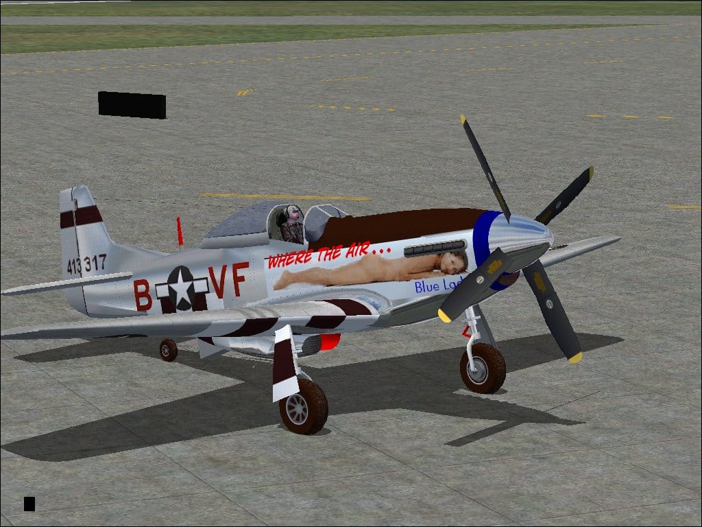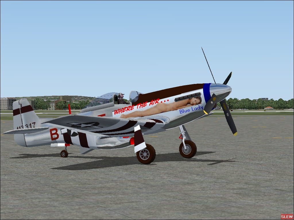 FS2004 P51D “Blue Lady”. A variation of a real and beautiful aircraft which is at present in the Royal Airforce Museum in north Hendon London England It is actually touching to see such aircraft standing proud after a long career during WW2. I claim credit for the repaint but all the credit should go to Robert Hawk who made available to us this beautiful P51D Repaint by Francis F. Silva Original model by Robert “Hawk”. 5MB