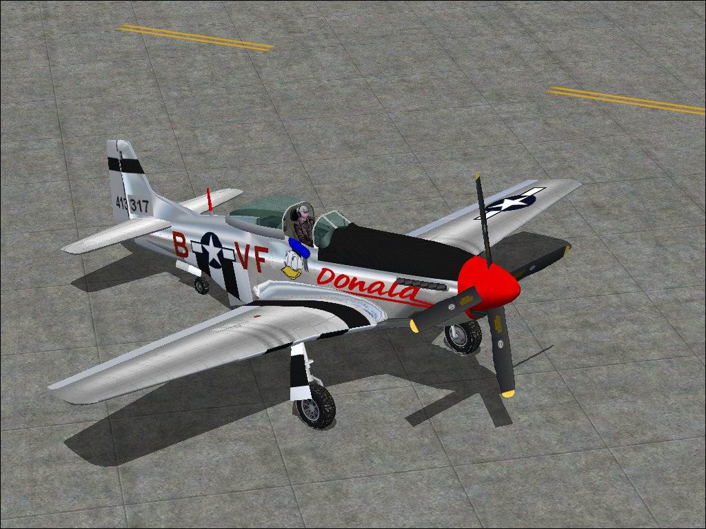 FS2004 P51D USAF Donald. This is not so much a model with a repaint for FS2004 but more a salute to a beautiful aircraft which is at present in the Royal Airforce Museum in north Hendon London EnglandRepaint by Francis F. Silva Original model by Robert “Hawk” with Super Tucano panel by Rick Brown. 4.7MB