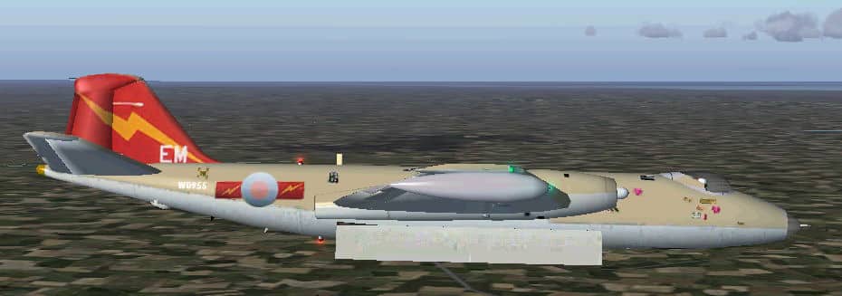 FS2004 RAF 360 sqn Canberra Mk2 Textures only. These textures depict the RAF Canberra of 360 Sqn, RAF wyton. WD955 was originally a MK2, but later converted to a T17. this version is the MK2. Requires Kazunori Ito’s Canberra 2 here. Textures by Dave Charleton/UKMil. 400K