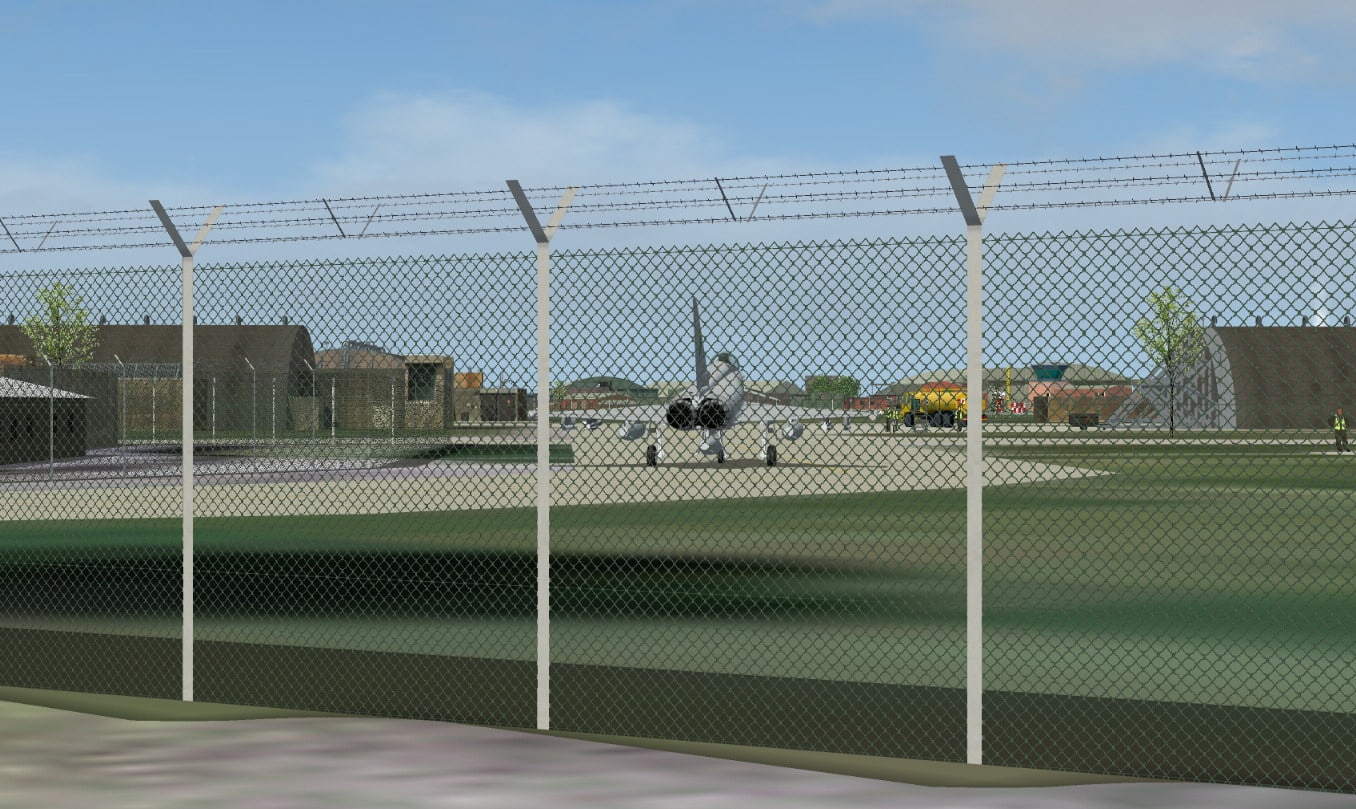 FS2004 RAF Coningsby, UK. A detailed representation of the home of the Eurofighter Typhoon in operational service in the UK. Gmax scenery with photo-tiles. Features aircraft shelters with animated doors, flight line equipment and personnel and options to maintain frame rate for users with lower end PCs. A comprehensive AI package is available at UKMIL. By John Young, UKMIL. 9.8MB