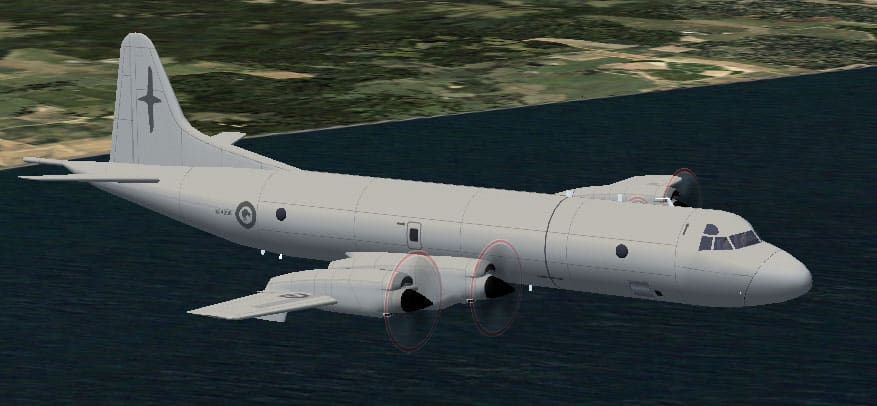 FS2004 RNZAF P-3K Lockheed Orion New Colours Textures for Mike Stone’s P-3 Orion in the colour scheme of RNZAF P-3K Orion, 5 Squadron, Whenuapai 2004. Requires Mike’s original file here. Textures by Geoff Chambers. 160K