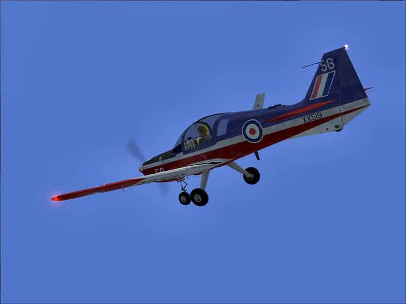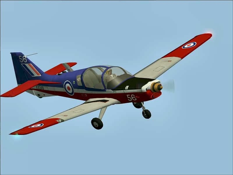 FS2004 S.A. Bulldog T. MK1 XX519 (Ficticious) Textures Only. The Bulldog was a training aircraft developed by Scottish Aviation from the Beagle Pup light aircraft, the prototype first flying in 1969. Main user was the RAF, with others going to Nigeria, Kenya, Jordan, Ghana, Sweden,(as the SK-61) and Malta. Several are also on the Civil register. This plane has full FS animations, shiney tex’s and V-Cockpit with some custom gauges. Includes RAF, Maltese, And Swedish paint schemes, the Swedish scheme having its own SK-61 model. Requires aircraft by Tim Conrad (here). Repaint by Ben Hartmann of UKMIL. 2.4MB