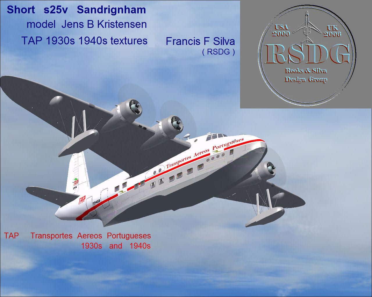 FS2004 Short S.25V Sandringham T.A.P.Portugal 1940s Package. The Sandringham was a civil conversion of the WW2 Short Sunderland maritime patrol flying boat. Includes virtual cockpit (VC) Liveries for Vintage T.A.P. by Francis F Silva model by Jens B. Kristensen. 5.8MB