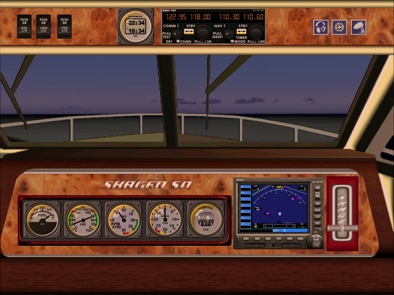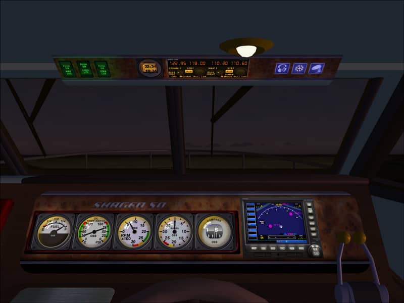 FS2004 Skagen50 Motoryacht V.2.0. A 15m motoryacht with moving parts, natural lights, real sound, full 3D exterior and interior, New FDE, new 2D panel with new gauges, new virtual cockpit with new gauges, second virtual cockpit (upstairs) full functional, operated with Active Camera, reverse engine, new painting. By Robert Waszkiewicz – Deltasim Studio. 8MB