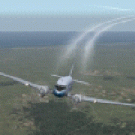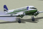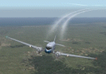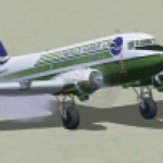FS2004 Special effects for default DC-3. Customized engine startup smoke and high altitude contrails are now enabled by MS for use on each aircraft, jet or prop, single or multi-engine, by using the FS9 version of the aircraft.cfg’s [EFFECTS] section to specify them. The temperature below which the contrails occur can also be defined in aircraft.cfg by the user. DC-3 startup smoke, contrails, and tire- mark (14″ wide) are included in the d/l. Also fixes wrong prop rotation; has more scrape points/effects for bellylandings. Easy manual installation with all new filenames. By Jan Rosenberg. 65K