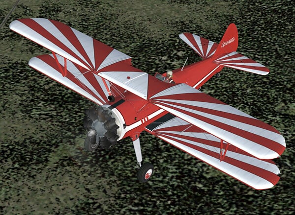 FS2004 Stearman Kaydet and Eagle Field Scenery Package. This is a *mostly* new model for FS2004. Model includes 6 new texture choices and models: U.S. Navy N2S-2, Navy N2S-3, PT-13A Pre WWII USAAC, PT-13D USAF, RCAF and civilian colors. Also includes additional scenery of Eagle Field – fictitious field near old Stearman Factory in Wichita, KS. Model, panel and gauges by David Eckert, FDE by Dennis Seeley and scenery by Mark Smith. 17.3MB