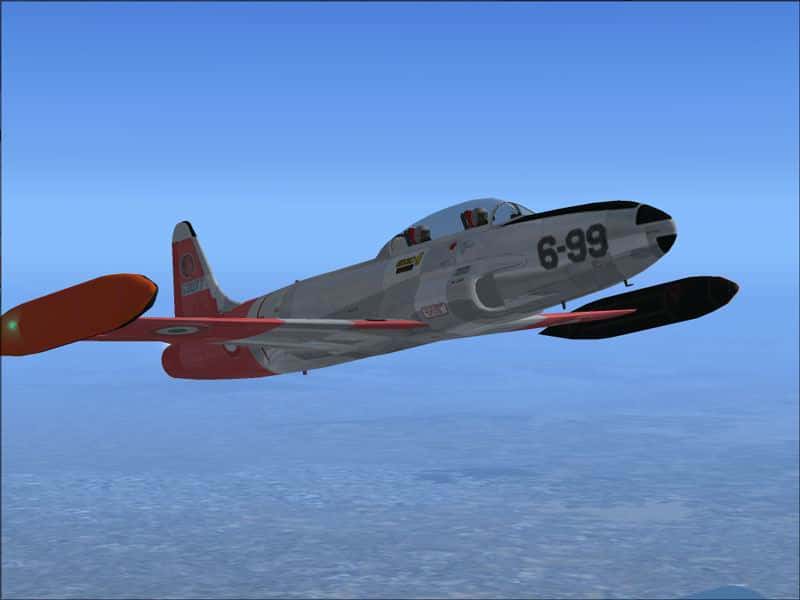 FS2004 T-33A Italian Air Force , 6 Aerobrigata “Diavoli Rossi” Textures only. FS2004 Lockheed T33 A Shooting Star, textured to represent an aircraft of Italian Air Force 6 Aerobrigata “Diavoli Rossi” operative during 1957-58. Requires the original model by Tim Conrad (here). Repaint by Manuele Villa. 1.2MB