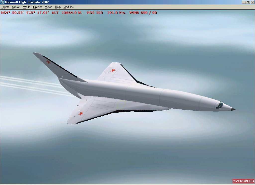 FS2004 Tu-360 Hypersonic Bomber. The Tu-360 was designed in the Tupolev OKB during the 1980s as replacement to the Tu-160. It was to carry a 10,000 kg offensive load to a distance of 10,000 km at a speed of Mach 6 powered by six variable-cycle turboramjet engines fuelled with liquid hydrogen. Crew consisted of two pilots. Gmax model with basic virtual cockpit. No panel or sounds included. FS2004 version. By Tuomas Närväinen. 536K