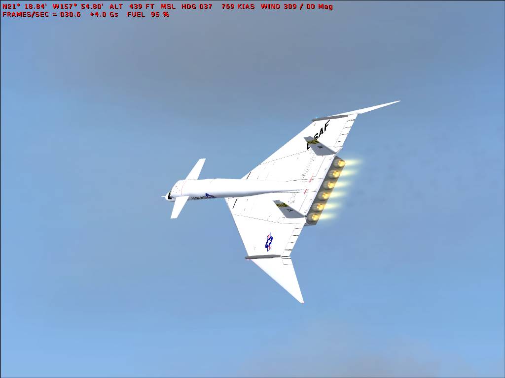 FS2004 Update for Massimo Altieri’s XB-70 (can be found here). I have redone the air and aircraft.cfg files so the plane flys better and added smoke effects. I have also altered the panel. I have added an autopilot, GPS, nav/GPS switch, and switched, moved, and or added gauges. Bob Chicilo. 304K
