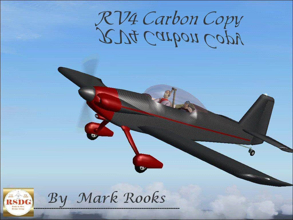 FS2004 Vans RV4 Carbon Copy. This is a repaint of Felipe Belalcazar’s Vans RV4 in a Carbon Fiber paint scheme Aircraft entitled ” Carbon Copy ” Textures by Mark Rooks ” Fireball ” of RSDG Studio. 1.5MB