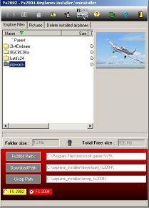 FS2004/2002 Aircraft Installer: Version 3.8 This utility works only for fs2002 and fs2004 and was tested on win2k. It will install and uninstall airplanes without overwriting fs2002-4 files. If there are others files such as gauges, sounds, effects, flights or modules files, that can also be handledVersion 3.6 New option of research. Some improvements. At the time of the launching of FS it happens sometimes that fs informs us that certain file are not compatible with the simulator, Such as for example gaugesound.dll It is consequently interesting to be able to find the plane to which belongs this file. This can now be done since the panel of “Delete installed airplanes”. (see help). Rene Konrad.1MB