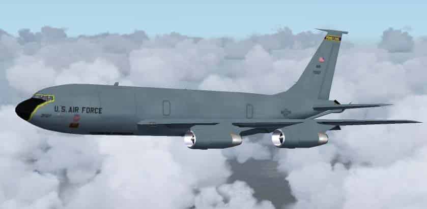 FS2004/2002 KC-135E Stratotanker v1.8 Pennsylvania Air National Guard and Camouflage textures. Model build in GMAX, with reflections, night lighting with PDI lights; completely new flight dynamics; animated flaps, ailerons, elevators, spoilers, rudder, refueling boom, gear with steerable nose wheels; separate landing and taxi lights Model, textures and FDE Original by Rok Dolenec.Includes a custom panel,all custom gauges, Com 1/Nav 1, Com 2/Nav 2,Voice Activated Radio Altimeter/VOR2,ADF/VOR1, Transponder, Autopilot,Fully Functional Throttle Quadrant/Landing Gear Panel, Engine Start Panel, 2D Views. Original by Chuck Grimes,Arne Bartels,Jean-Pierre Langer. 9.2MB