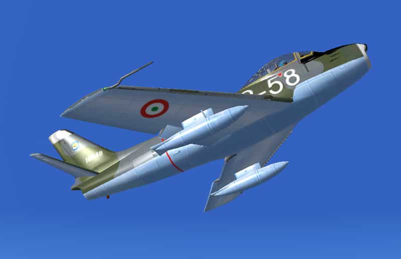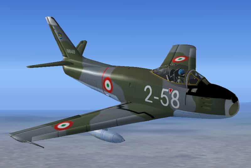FS2004/FS2002 North American F-86E “Sabre” (Canadair CL-13) Aeronautica Militare Italiana Textures only (Italian Air Force) 2nd Aerobrigata. Textures Only for an aircraft of 2nd Aerobrigata, Treviso, Italy 1961. These textures require the FREEWARE original aircraft by Kazunori Ito. Installation instructions are included. Repaint by Manuele Villa. 775K