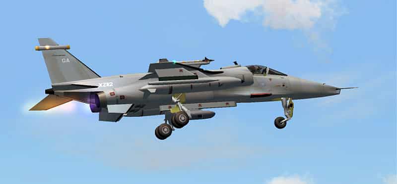 FS2004/FSX Jaguar Gr3 RAF OP Telic Textures only. This pack includes textures for XZ112 of RAF Coltishall in OP TELIC Light grey colours. The textures are full for the alphasim Jaguar (here). By UKMil. 795K