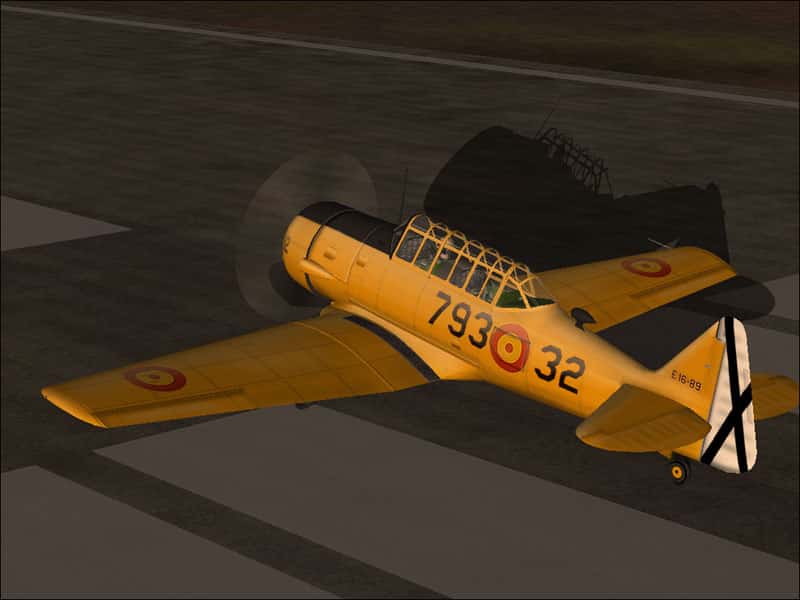 North American T6G SAF Textures only. Requires the J.E.Narcizo – RanchoJEN NA T6 G here. I paint a T-6G from de Academia General del Aire, Murcia, Spain. This aircraft, like in other countries, have trained a lot of generations of pilots for the Spanish Air Force. This is a tribute for it, and a remind for an aircraft, E.16-89, that now is preserved for instruction for ground crews at León A.B., Spain. You can also download my T-6D. 1MB