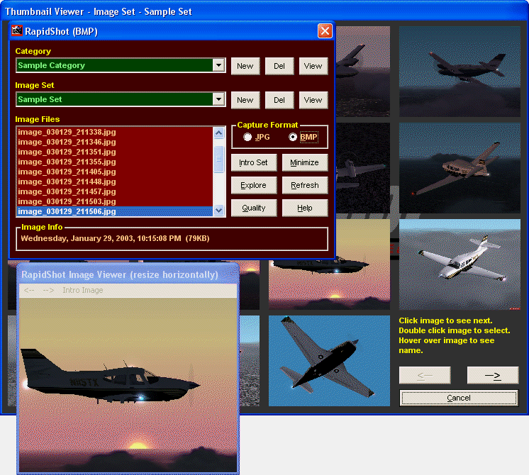 RapidShot v1.7 RapidShot is an easy to use screenshot utility that helps you take, organize and view screenshots. Whenever you press the Print Screen key (or optional user defined hotkey) while you’re using other applications and games, RapidShot takes the resulting screenshot and converts it to JPG (jpeg) or BMP (bitmap) format and then puts it into the predefined category of your creation and choosing. This enables you to take a set of screenshots in rapid succession simply by repeatedly pressing the Print Screen key. You can then use RapidShot’s integrated image, thumbnail and file viewers to select, view, rename, move and delete screenshots. The file viewer also provides easy access for pulling the images into your favorite image editing tools. Also available is a “Time-lapsed” screenshot mode which automatically takes screenshots at user defined intervals. By Mark Schilberg. 3.1MB