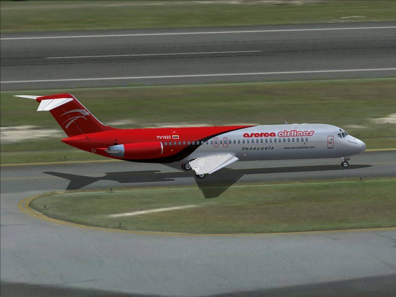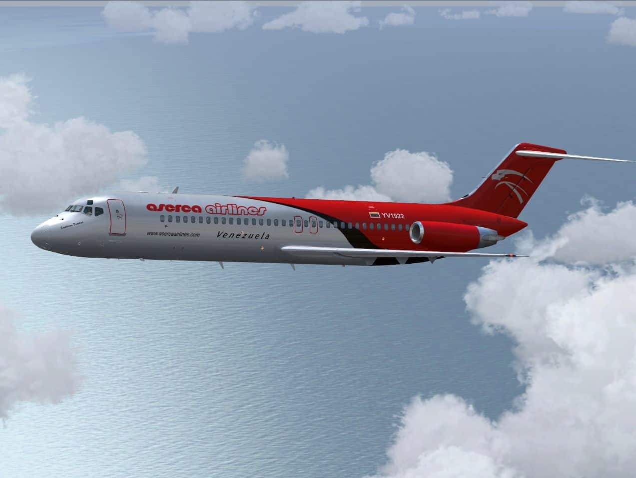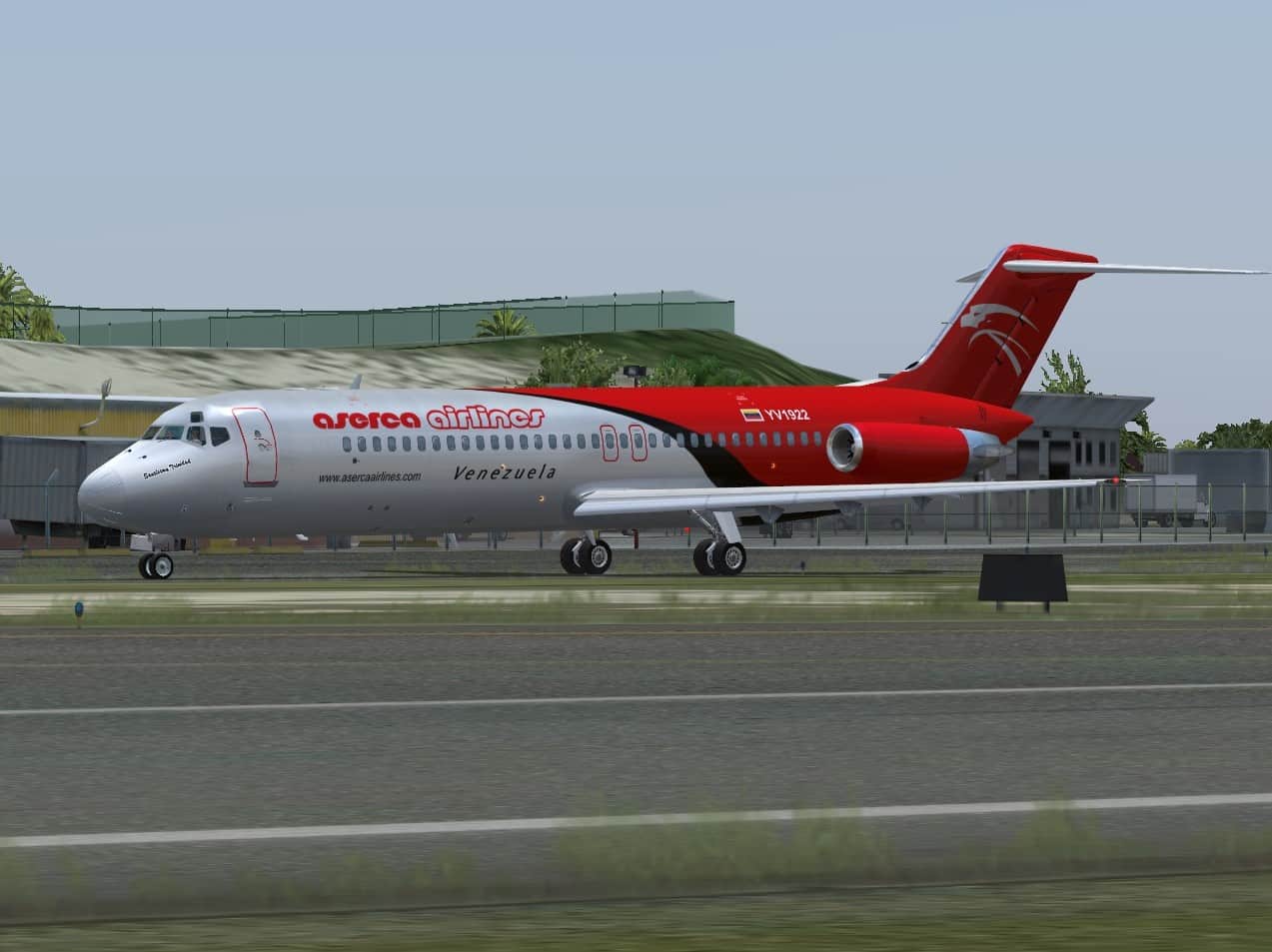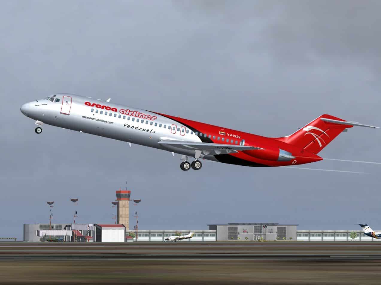 McDonnell-Douglas DC-9-31, cn 48138/1021, registration YV1922, named “Santisima Trinidad”, wearing the actual colors of Aserca Airlines. Fully reworked new textures only for the SkySimulations DC-9-31 model (payware package). By Juan Ernesto Oropeza.