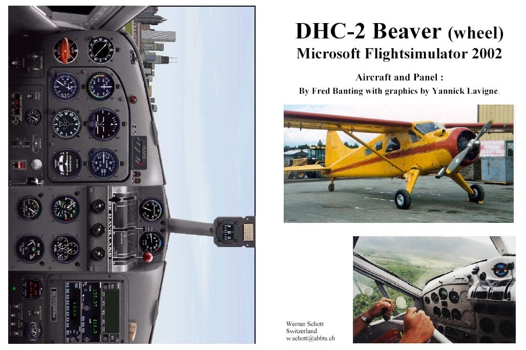 FS2002 Manual/Checklist — De Havilland DHC-2 Beaver Mk I (on wheels). FS2002 Manual/Checklist De Havilland DHC-2 Beaver Mk I (on wheels). In PDF-format as a booklet. From “cold” – Pre Start – Startup – Before Taxi – Taxi – Before Takeoff – Takeoff – Climb Out – Cruise – Descent – Approach – Landing – Taxi To Ramp – Shutdown – Securing Aircraft – to “cold”. Based on the DHC-2 Beaver panel by Fred Banting. Freeware by Werner Schott. 800K