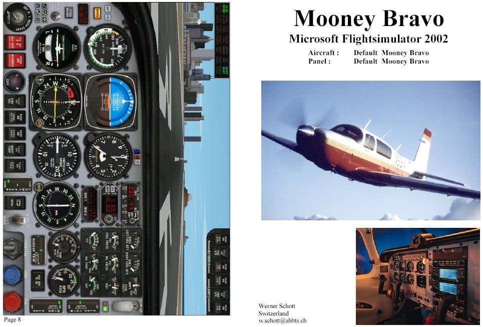 FS2002 Manual/Checklist — Default Mooney Bravo. FS2002 Manual/Checklist Default Mooney Bravo. In PDF-format as a booklet. From “cold” – Pre Start – Startup – Before Taxi – Taxi – Before Takeoff – Takeoff – Climb Out – Cruise – Descent – Approach – Landing – Taxi To Ramp – Shutdown – Securing Aircraft – to “cold”. Freeware by Werner Schott. 453K