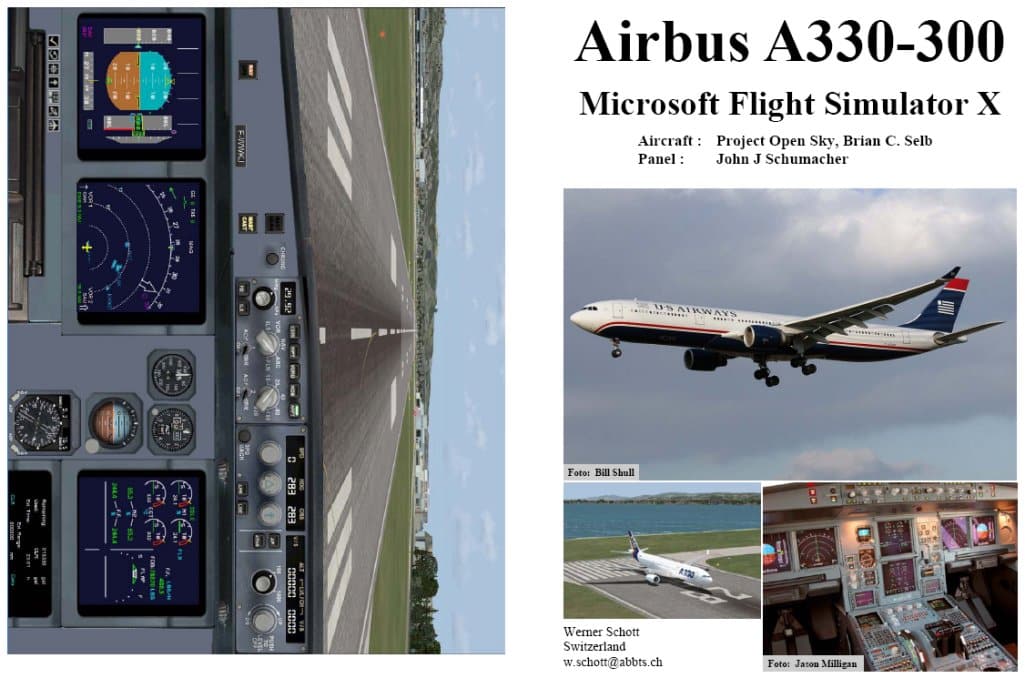 FSX Manual/Checklist Airbus A330-300. In PDF-format as a booklet. From “cold” – Pre Start – Startup – Before Taxi – Taxi – Before Takeoff – Takeoff – Climb Out – Cruise – Descent – Approach – Landing – Taxi To Ramp – Shutdown – Securing Aircraft – to “cold”. Based on the “Airbus A330-300” aircraft by Project OpenSky (POSKY) and panel by John J Schumacher. FS2002+FS2004 versions had more than 10’000 downloads Freeware by Werner Schott. 508K