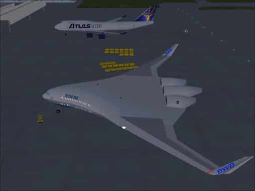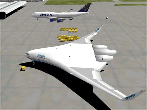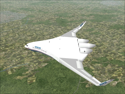 FS2000 Boeing BWB (Blended Wing Body). This Aircraft is a NASA research project. The BWB is a double-deck jetliner and could carry as many as 800 passengers over 7,000 NM. Entry into service date: 2020. Features: maximum moving parts and night lighting. Design and paint by: Marcel Scherwionke. 785K