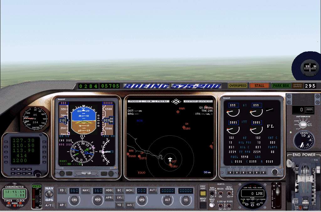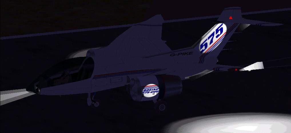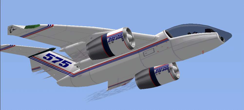 FS2000 Concept Design 4 Seater Private Jet v2 Fictitious Boeing 575-200 demonstrator. Painted in more realistic house colours. Animated parts additional to version 1.0 are, pilot’s arms, legs and head move with flight contols, spoilers, slats, lift dumpers and thrust reversers. Full lights include logo ‘splashes’. Own panel. Uses default 737-400 sounds. Most parts remodelled. Design/paint, Nick Pike. Panel, Mark Hubbard. 2.7MB