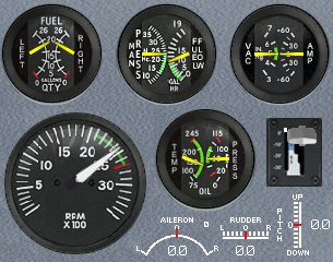 For Saitek Pro Flight Instrument Panel. This is folder contains 2 analogical engine panels for Cessna 172. The two panels are identical except for the upper middle gauge, left side is EGT for Cessna_172_engine_1.xml file and it is manifold pressure instead for Cessna_172_engine_2.xml file. The package includes a serie of colored needles that can be change easily, just replace the default needles by the one of your choice. Default needles are yellow and provide more visibility in small gauges. The panel provides Fuel quantity for left and right tanks, Exhaust Gas Temperature or Manifold pressure, Fuel flow, Suction, Alternator charge, Rotation Per Minutes, Oil temperature and pressure, Flaps handle and bug, trim bug and numbers for pitch, rudder and aileron.