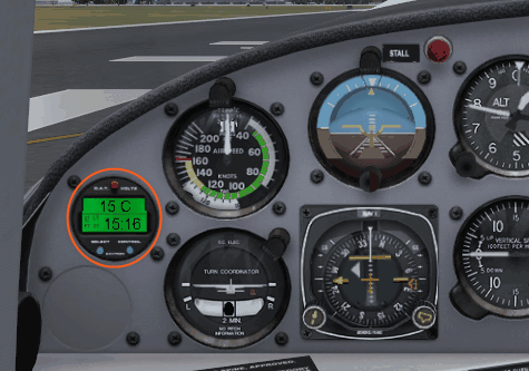 Still six functions available (GMT, LT, FT, chrono + OAT, Voltage) and activation through key strokes (Not for 2004). Two background bitmaps available (w/ or w/o screws). NEW: Fixed bug, reset LT, orange and green coloured screens. See readme.txt for details . FSX, P3Dv1.4 and FS 2004 stand alone XML gauge. By Pierre Fasseaux.