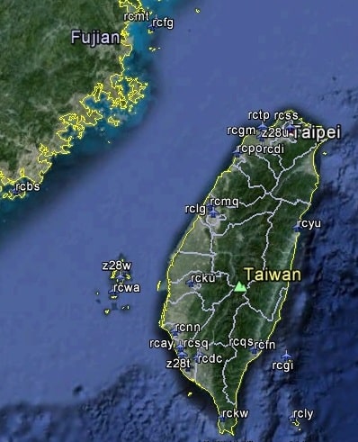 Tested on Windows XP and Windows 7. This download adds airfield markers and ICAO id’s found in FSX, and overlays them on Google Earth. This file is for Taiwan. There is also a seperate file with a list of basic airfield location details. i.e: EGBB Birmingham Airport. Birmingham. N52* 27.23′ W1* 44.88′ alt325. Also the tidying “My places” in Google Earth, file. Other locator files to follow. by Carl Vokes