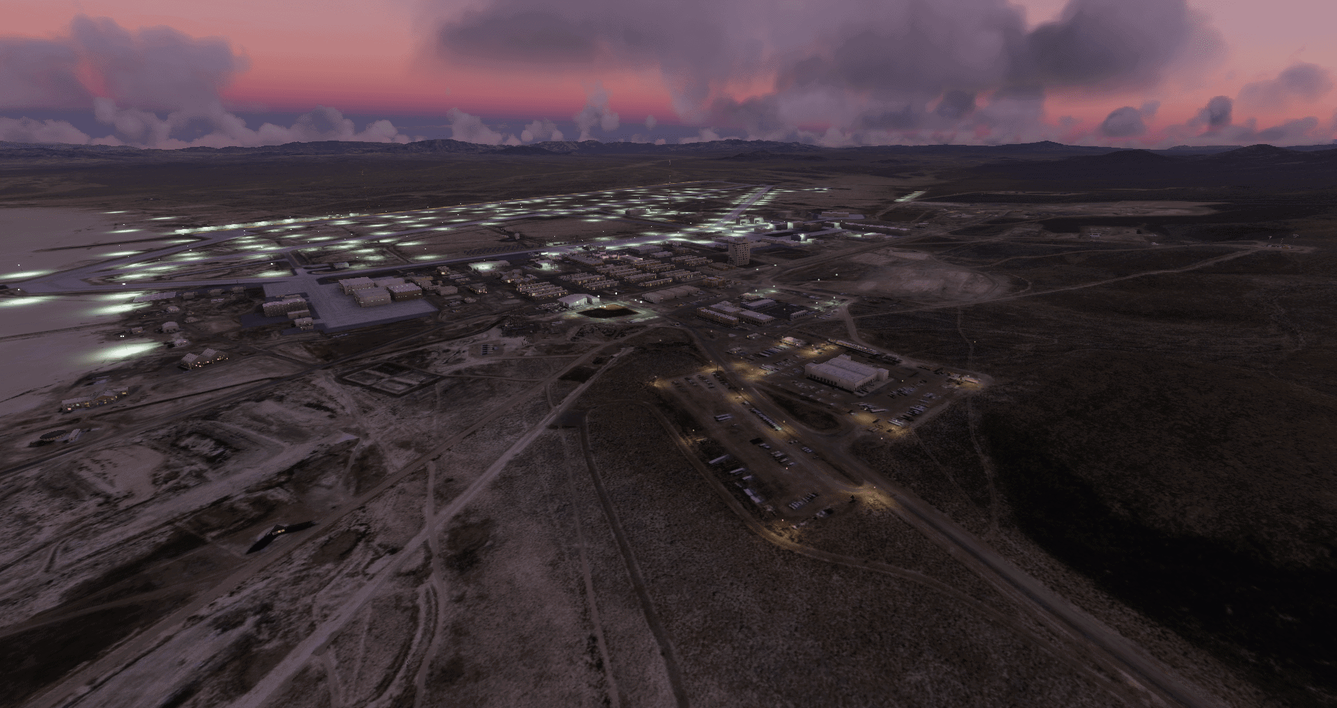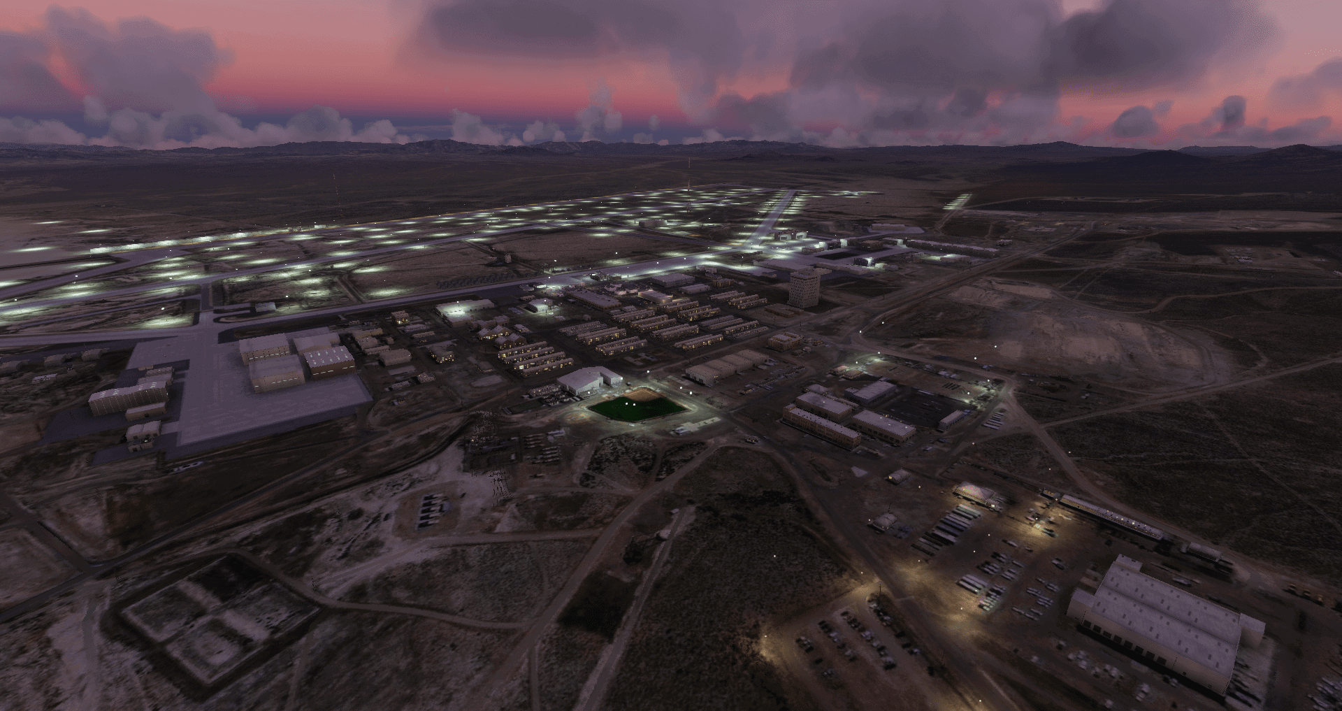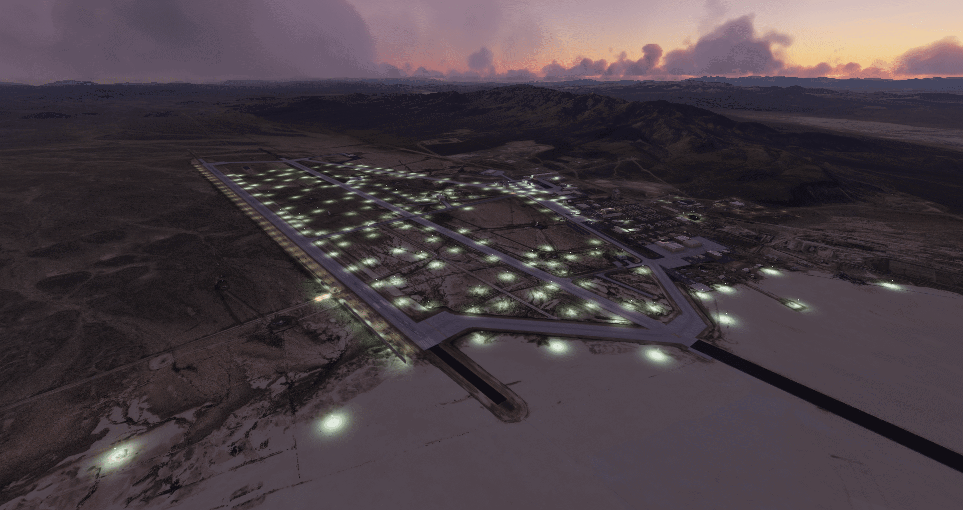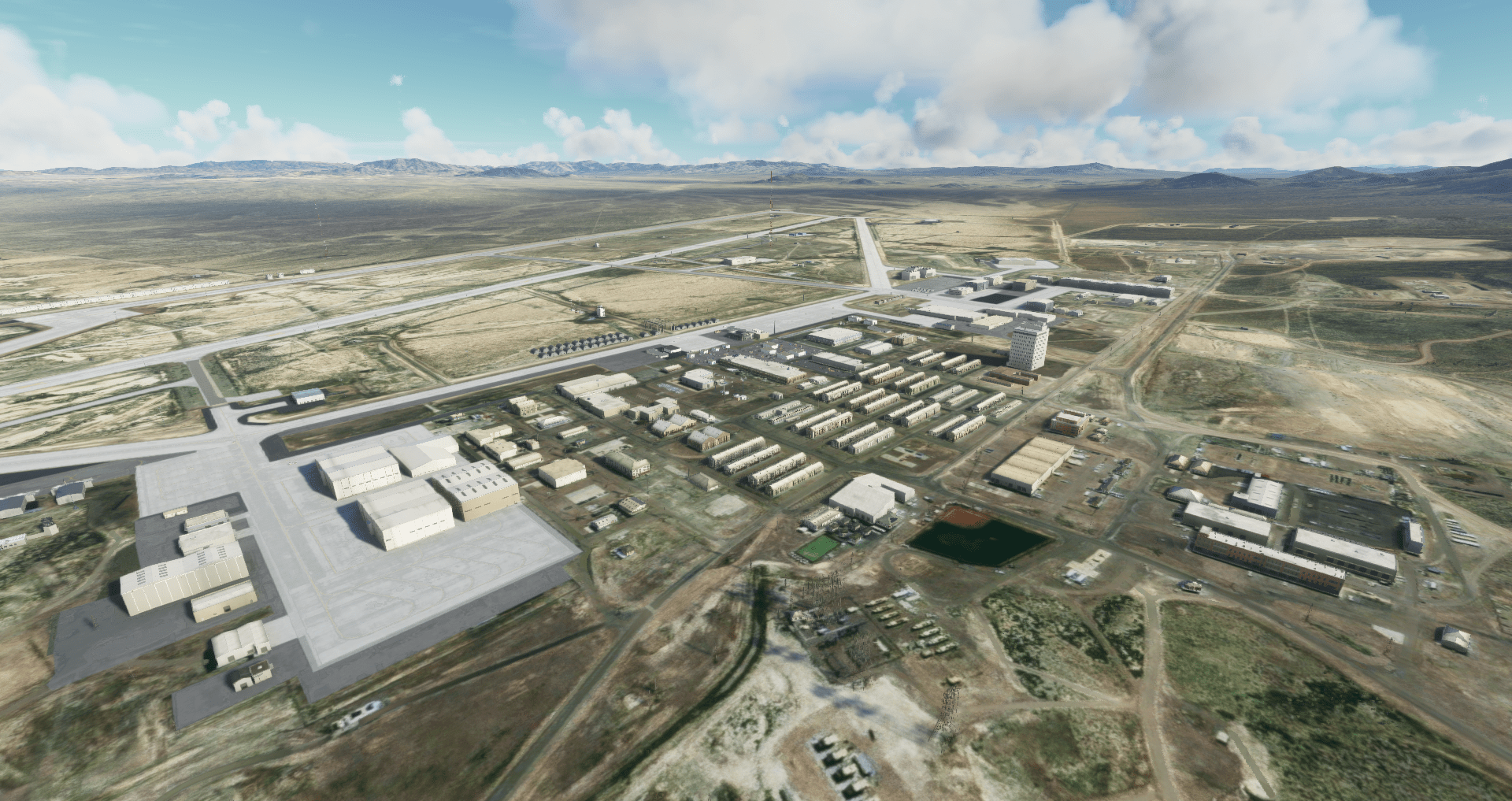Area 51 – also known as Homey Airport KXTA – is a pretty mysterious place. Whether you’re a skeptic, “want to believe”, or are a fervent believer in the extraterrestrial related activities of Area 5, it is no doubt a pretty cool place to go visit in Microsoft Flight Simulator. I definitely think it’s preferable to Naruto running full force at the place in real life… but that’s just a personal preference I guess. The main addition here relates to the lighting of the buildings at night, and the addition of a variety of buildings which add a more authentic and militaristic feel to the place.