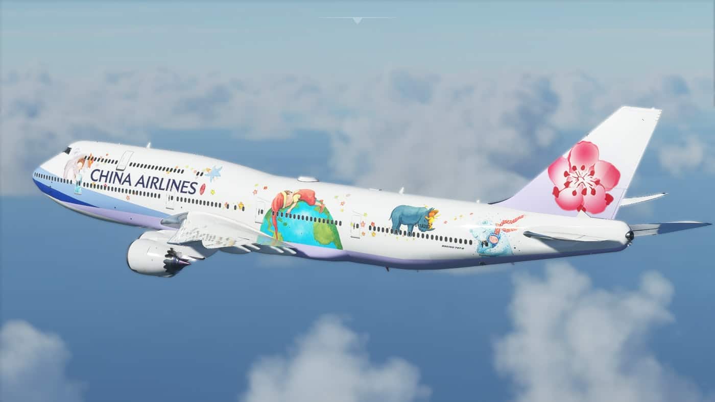 This livery includes 2 versions, “Left” and “Right”, because of the limitations of 747 texture file, each version has text and decals on the other side mirrored. (In this livery the left and right has different decals)