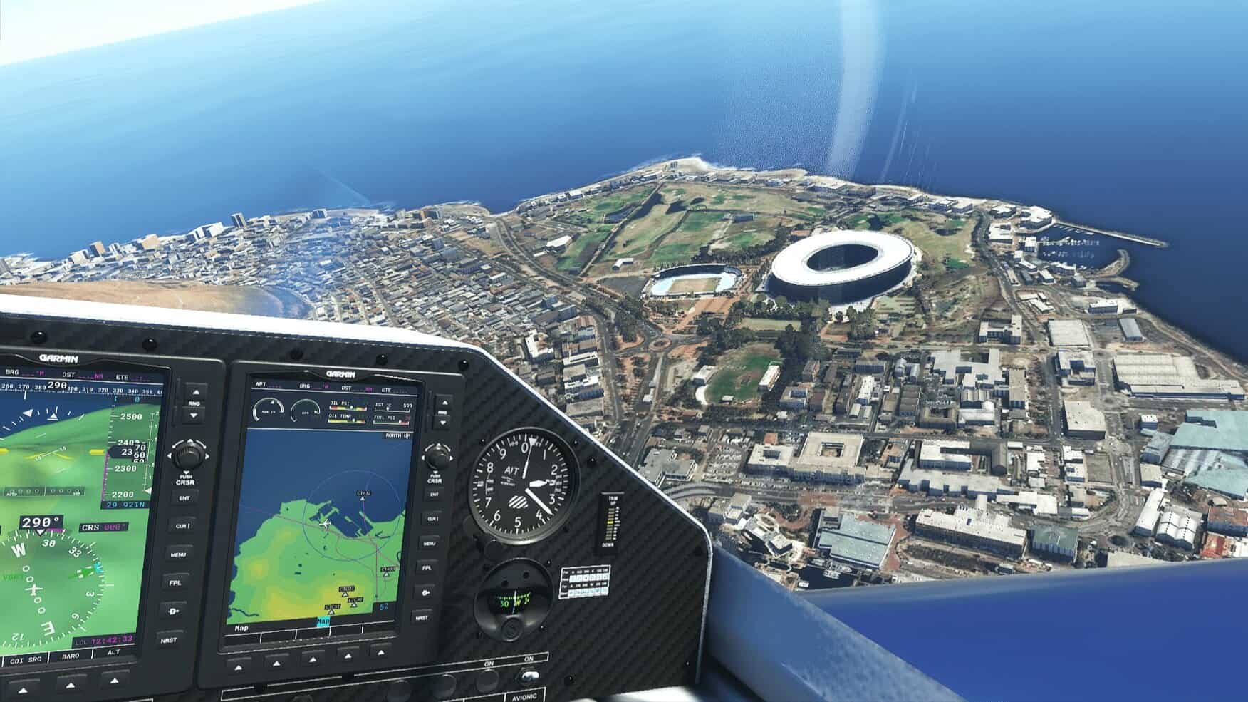 Constructed for the 2010 FIFA World Cup, Cape Town Stadium is pretty famous. I’m not going to torture my readers by again going in depth about why I’m super interested in Cape Town due to the cool mini-series TV series Trackers – but I will tell you this, South Africa is a place you should explore in MSFS. Thanks to Nardus Fick, we all have a great excuse to go visit now! You can use the coordinates and enter those in the map, or depart from FACT (Cape Town International) and make your way over.