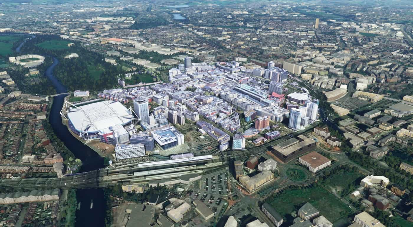 Landmarks and buildings for Cardiff, Wales, UK from Google photogrammetry.