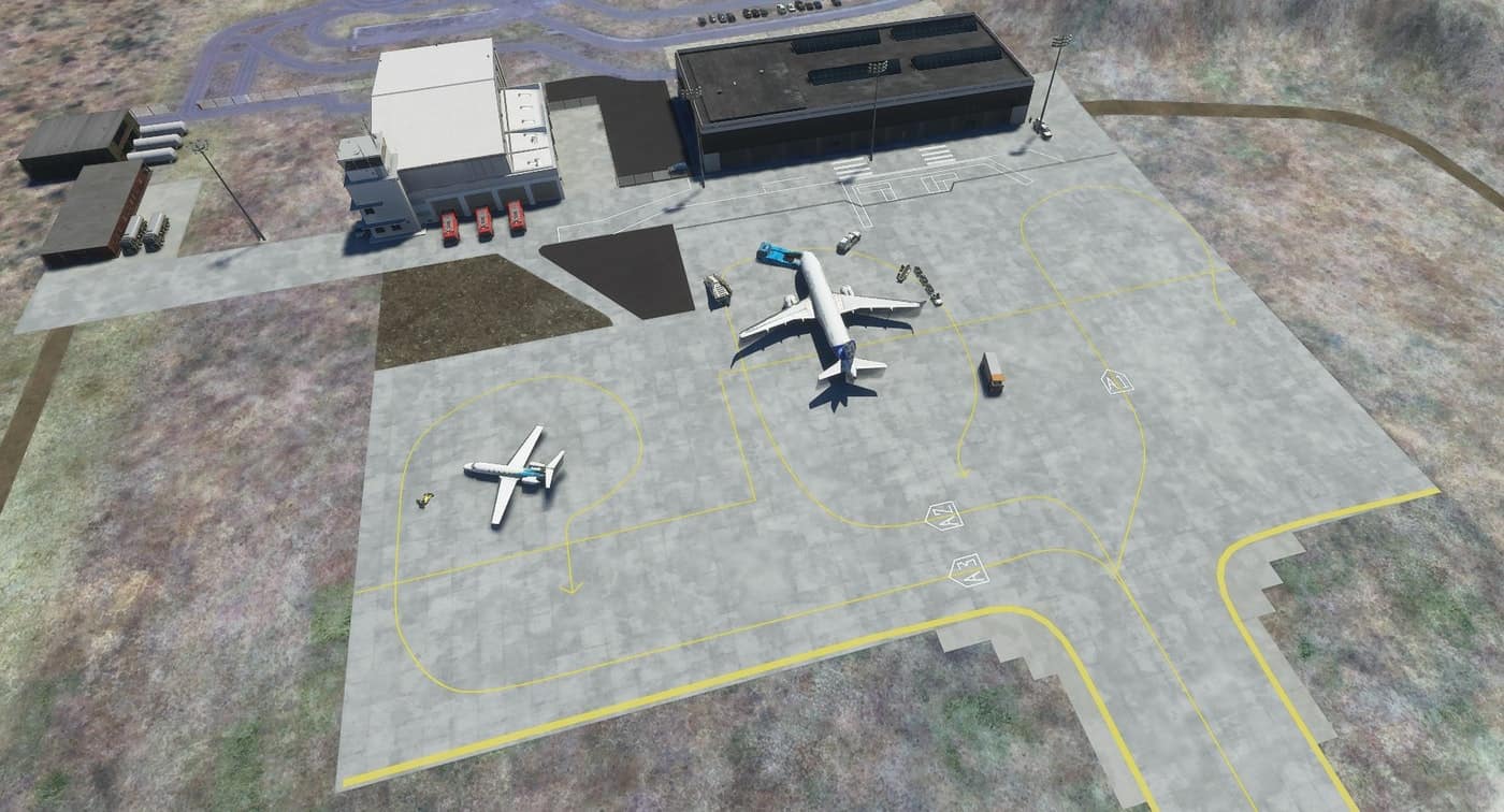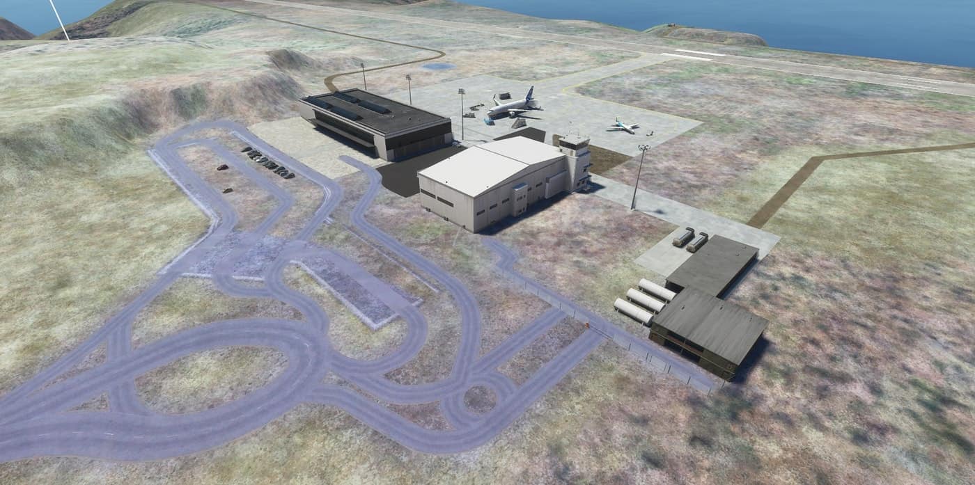 Airport buildings were in the sim, but no runway, so these have been integrated and played with.