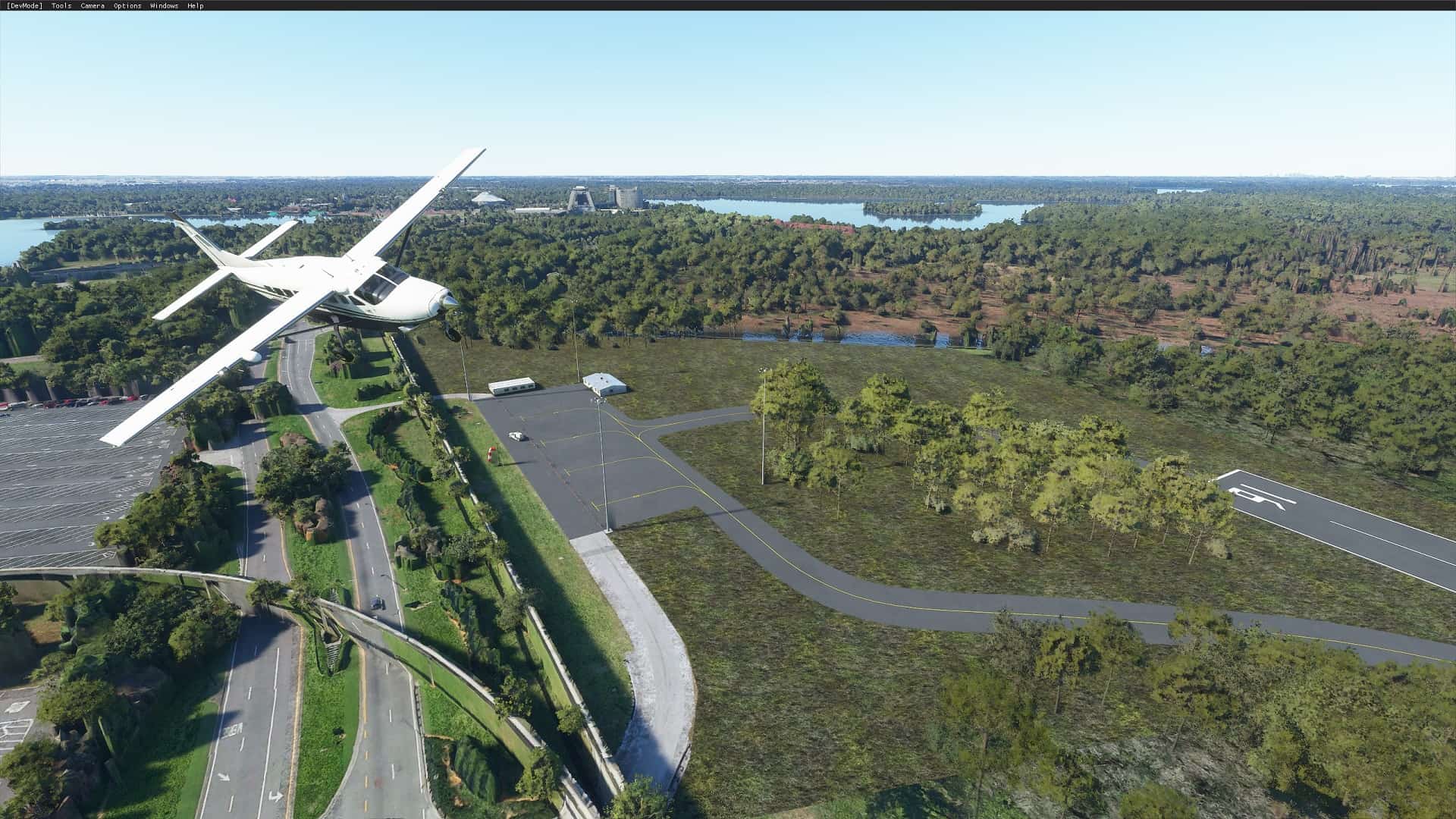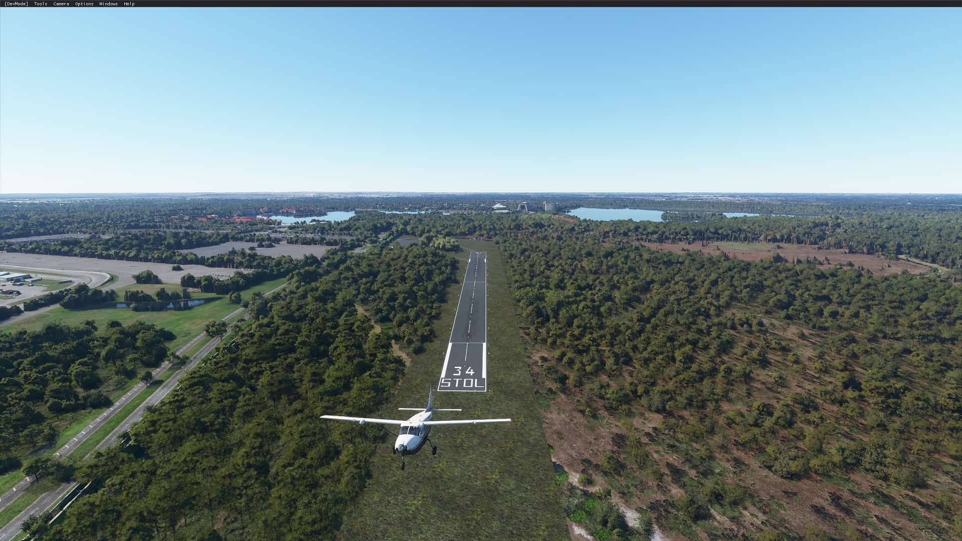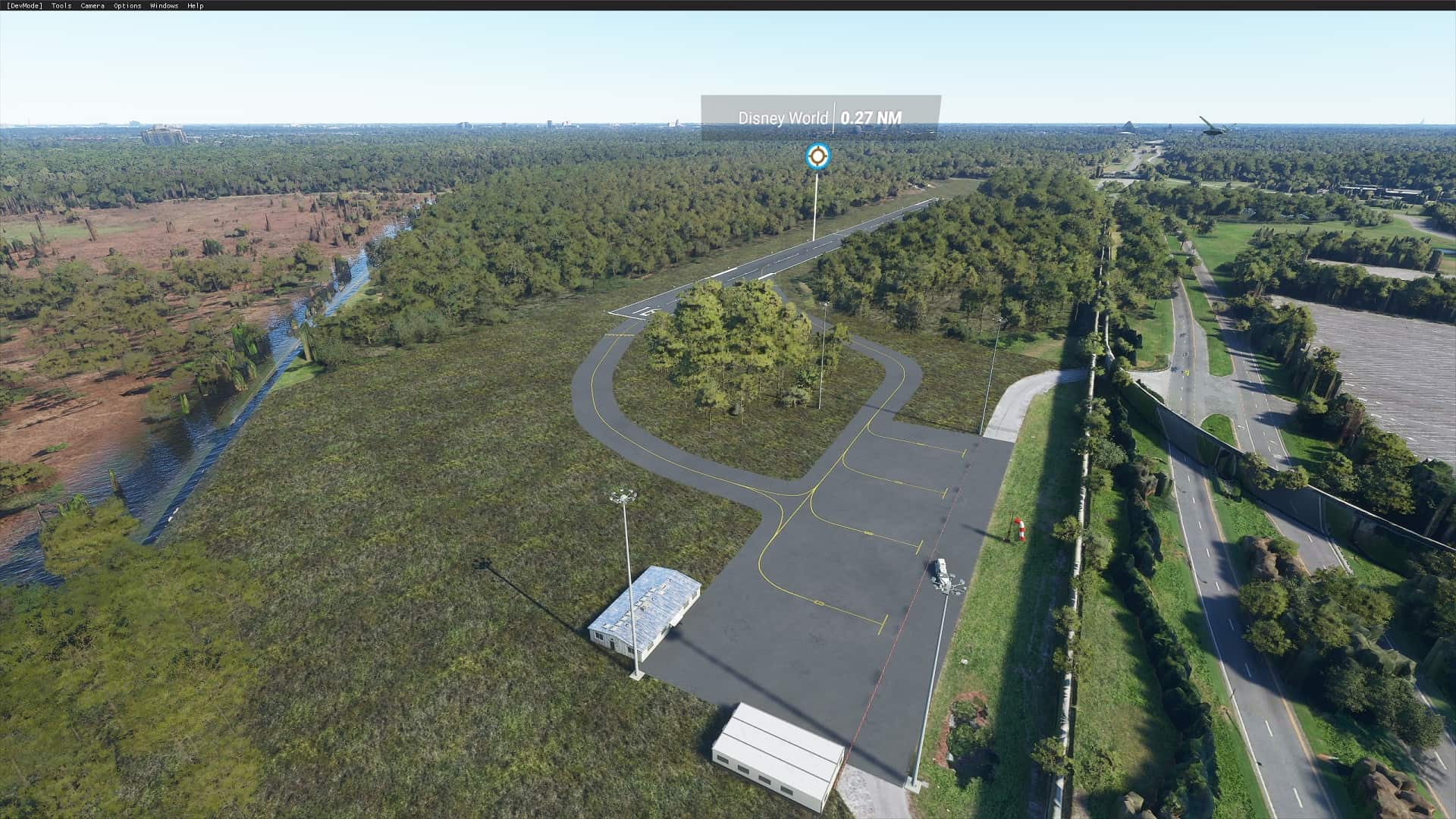 The Disney World airport/STOLport (also known as the Lake Buena Vista airport/STOLport) is a now closed airport that was located just south of Magic Kingdom park in Florida. The runway in my recreation is accurate in terms of size. Due to there being no actual pictures of the parking area aside from two planes facing the camera (literally nothing, no idea on parking, buildings, lighting, etc), the apron (parking) area is one giant guess. My version is meant to be representative of how the STOLport was back when it initially opened in 1971. Main differences in this scenery compared to now are a much smaller apron area, next to no buildings, and no connecting road at the end of 34. Currently the runway is used as a storage area for various Walt Disney World project equipment and the apron now has trailers and small offices on it.