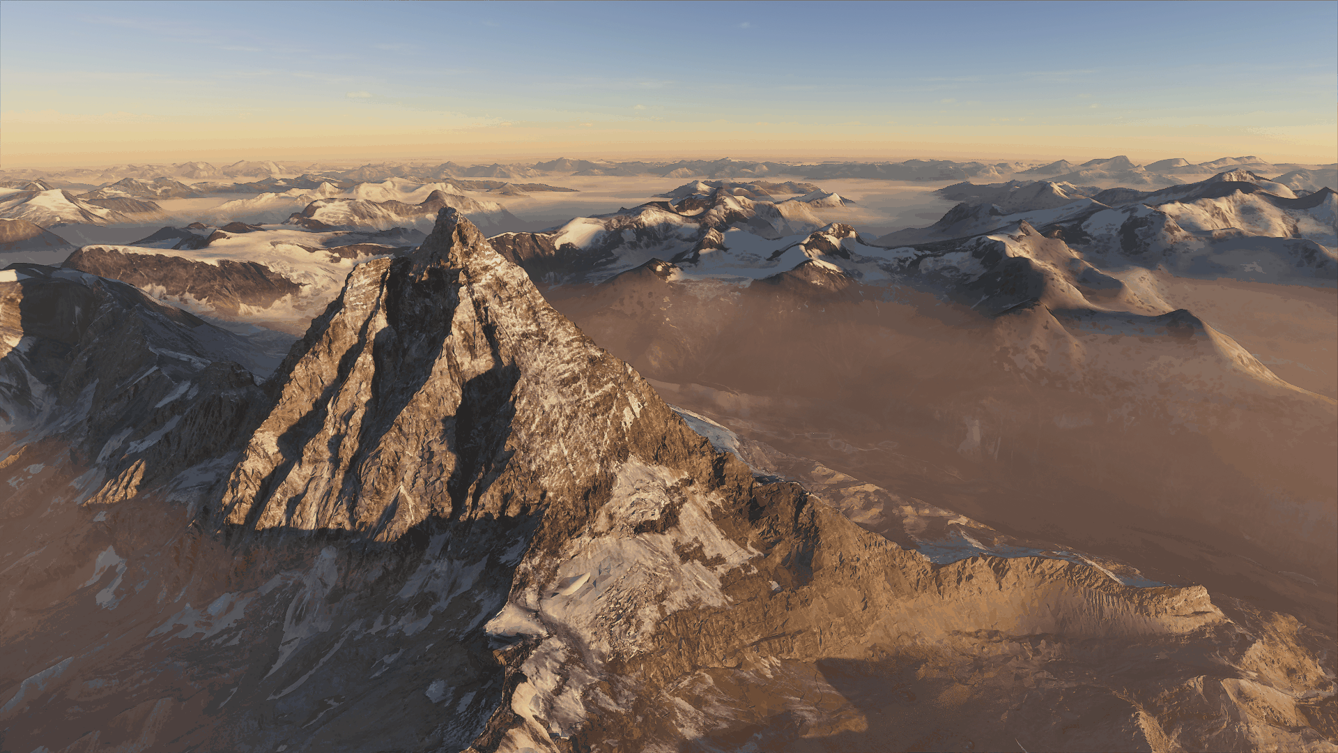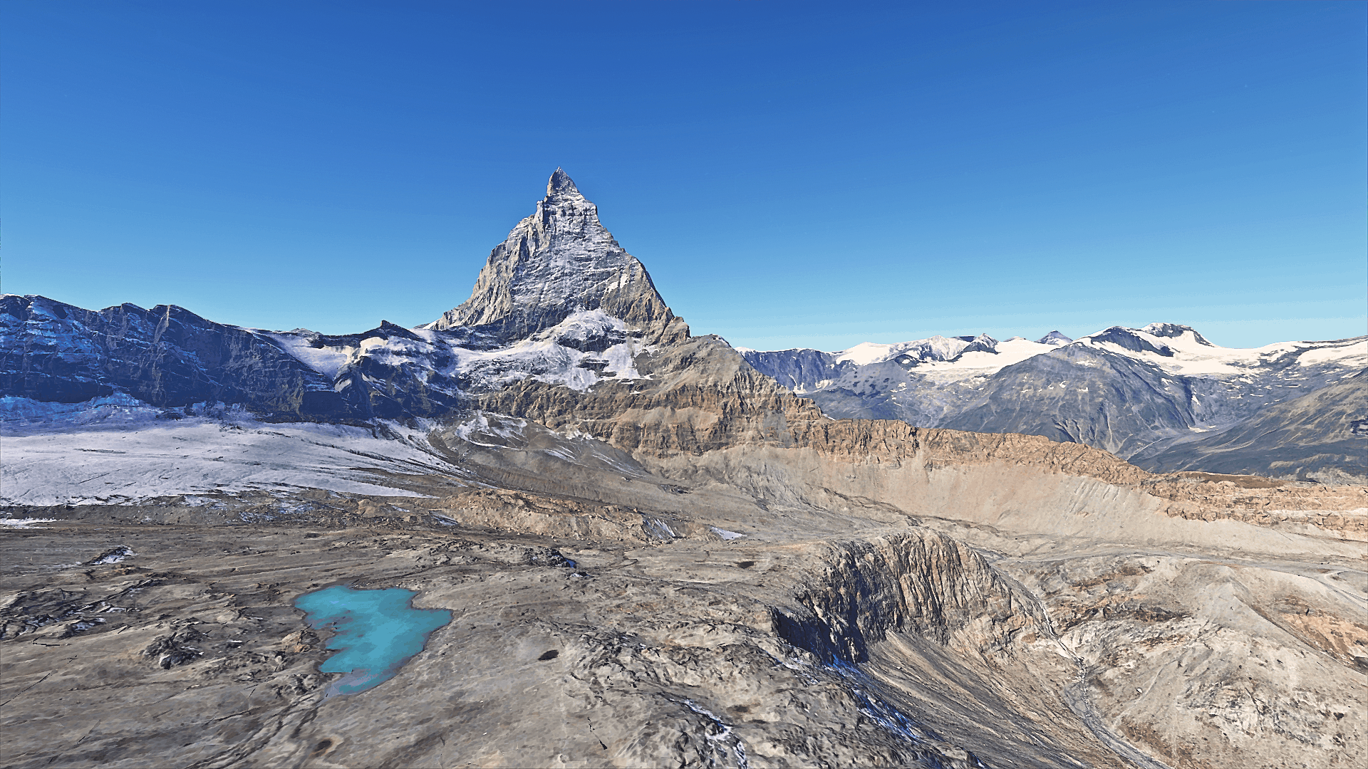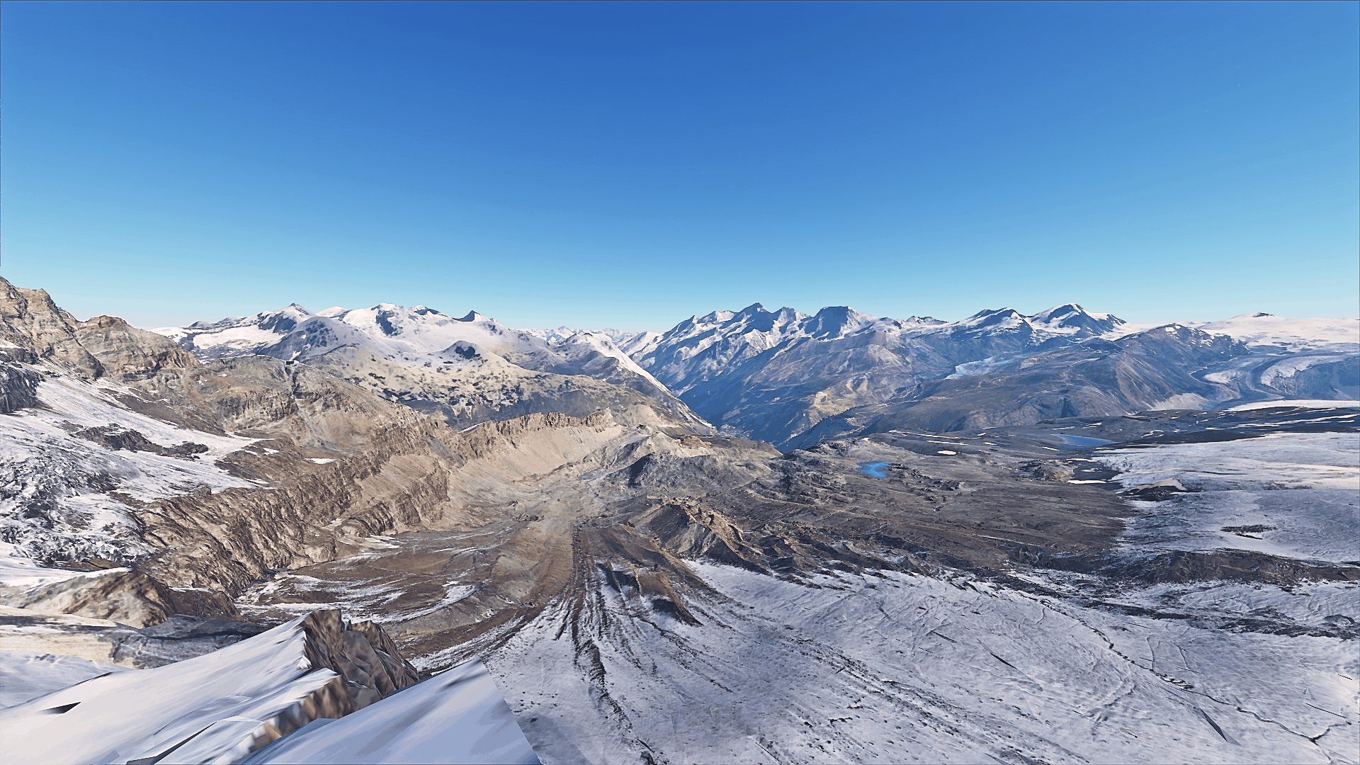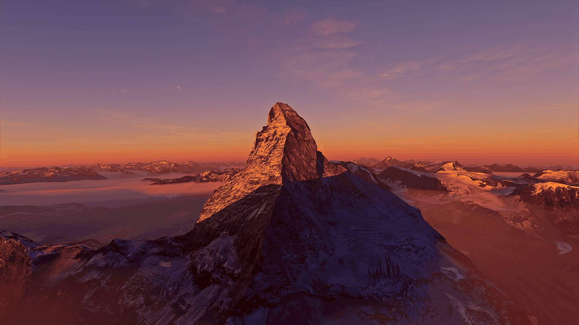 Matterhorn, the Swiss and incredibly photogenic giant. Famous around the world, this mountain is a beauty. That’s why I took the challenge to “renovate” the original one of the game, that looked lacking. Matterhorn figure is very difficult to be interpreted successfully in the sim with low resolution mesh data, it needed a really high resolution model. This is what it is. There are known issues such as : You can pass beneath the artificial ground of the model because the mesh underneath is not accurate,so no collision for the most part. There are also some artifacts at the edges of the scenery(i tried to cover up most of them somehow) and my theory is that they were created during the injection of the model in blender.