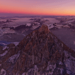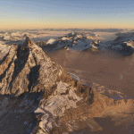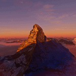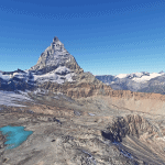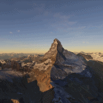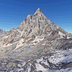 Trivia: The Matterhorn (/ˈmætərhɔːrn/, German: [ˈmatərˌhɔrn]; Italian: Cervino [tʃerˈviːno]; French: Cervin [sɛʁvɛ̃]) is a mountain of the Alps, straddling the main watershed and border between Switzerland and Italy. It is a large, near-symmetric pyramidal peak in the extended Monte Rosa area of the Pennine Alps, whose summit is 4,478 metres (14,692 ft) high, making it one of the highest summits in the Alps and Europe.The four steep faces, rising above the surrounding glaciers, face the four compass points and are split by the Hörnli, Furggen, Leone/Lion, and Zmutt ridges. The mountain overlooks the Swiss town of Zermatt, in the canton of Valais, to the north-east and the Italian town of Breuil-Cervinia in the Aosta Valley to the south. Just east of the Matterhorn is Theodul Pass, the main passage between the two valleys on its north and south sides, and a trade route since the Roman Era.The Matterhorn was studied by Horace-Bénédict de Saussure in the late eighteenth century, who was followed by other renowned naturalists and artists, such as John Ruskin, in the 19th century. It remained unclimbed after most of the other great Alpine peaks had been attained and became the subject of an international competition for the summit. The first ascent of the Matterhorn was in 1865 from Zermatt by a party led by Edward Whymper; it ended when four of its seven members fell to their deaths on the descent. This disaster, later portrayed in several films, marked the end of the golden age of alpinism. The north face was not climbed until 1931 and is among the three biggest north faces of the Alps, known as “The Trilogy”. The west face, which is the highest of the Matterhorn’s four faces, was completely climbed only in 1962. It is estimated that over 500 alpinists have died on the Matterhorn, making it one of the deadliest peaks in the world.The Matterhorn is mainly composed of gneisses (originally fragments of the African Plate before the Alpine orogeny) from the Dent Blanche nappe, lying over ophiolites and sedimentary rocks of the Penninic nappes. The mountain’s current shape is the result of cirque erosion due to multiple glaciers diverging from the peak, such as the Matterhorn Glacier at the base of the north face. Sometimes referred to as the Mountain of Mountains (German: Berg der Berge),the Matterhorn has become an iconic emblem of the Alps in general. Since the end of the 19th century, when railways were built in the area, the mountain has attracted increasing numbers of visitors and climbers. Each year, numerous mountaineers try to climb the Matterhorn from the Hörnli Hut via the northeast Hörnli ridge, the most popular route to the summit. Many trekkers also undertake the 10-day-long circuit around the mountain. The Matterhorn has been part of the Swiss Federal Inventory of Natural Monuments since 1983.