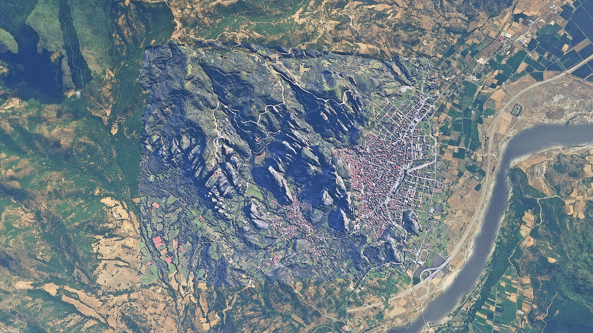 The hybrid version took many hours to be realised into it’s final form , due to the technical difficulty of making so many different terraforming rectangles into the SDK, so that the model “fits” naturally into the default landscape that Blackshark AI created. It is also quite important to note, that not all the rocks have collision and that you can actually fly under the ground in many occasions. It is not an easy task to “fit” the default , real ground of the sim , to the modded one of the photogrammetric model.