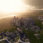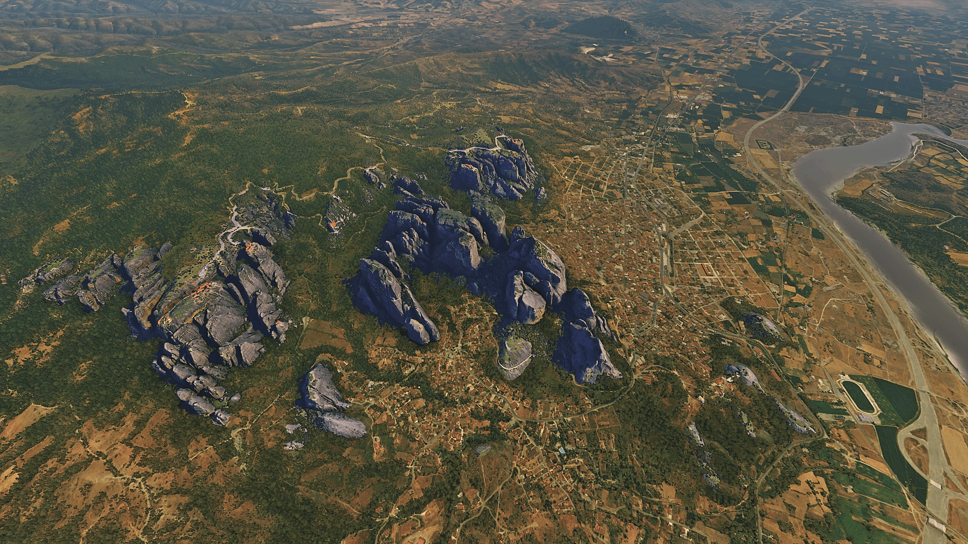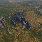 2. A “Hybrid” one, meaning it has the photogrammetric essential models(the rocks) “fused” within the default terrain,buildings and trees (I’ll update some missing trees eventually). *(This version is also a little larger and maybe “laggy” for some with not powerful machines)