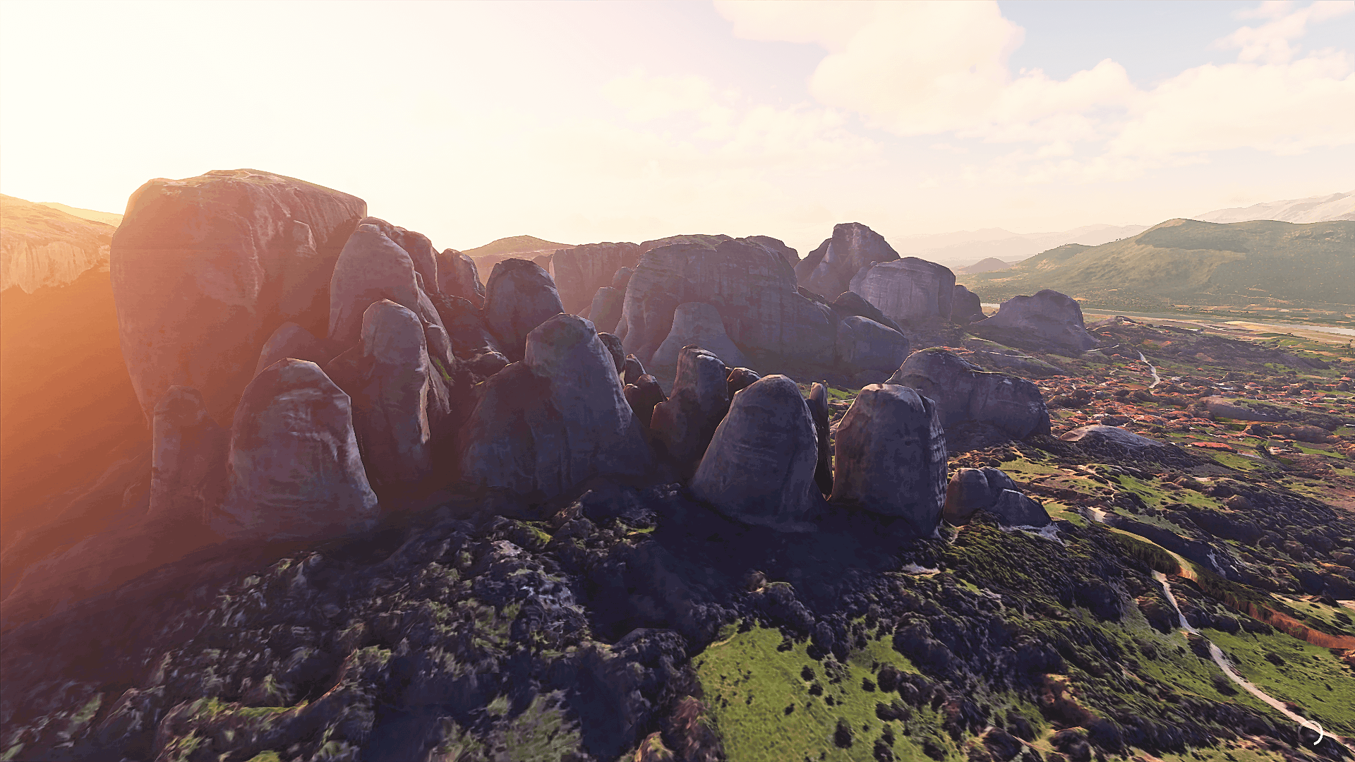 1. Totally covered with the “Photogrammetric” model (smaller in size too, yeah). It is very useful to know, that the photogrammetry model of the town and its buildings is not highly detailed resulting in “melted” looking buildings and details of the scenery. The rocks and the hills look breathtaking nonetheless.