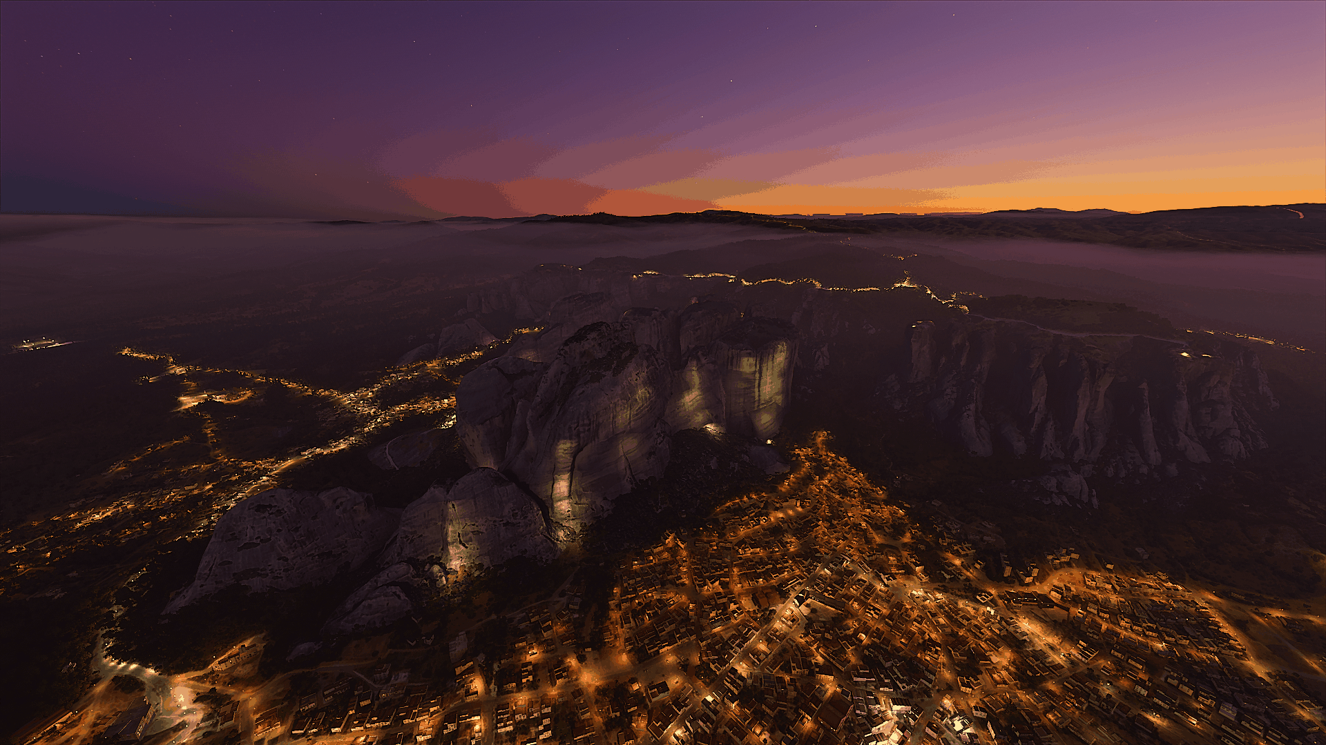 Ultra detailed scenery for the Greek “Monument Valley” also known as “Meteora”. Handmade night lights are included, illuminating the rocks as they are in real life photos and the mighty monasteries as well,making for a surreal flight.