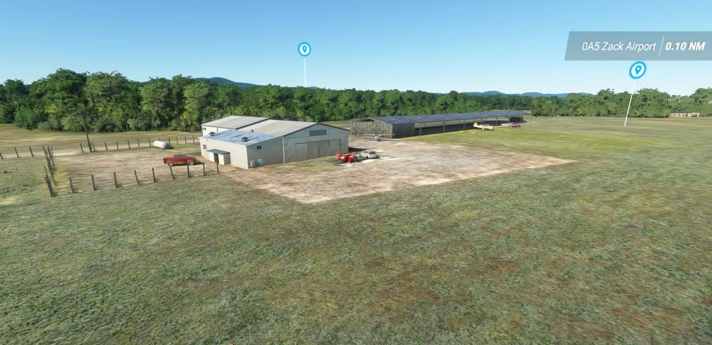 Zack Airport 0A5 is a small airfield located in Resaca, Ga. just north of Calhoun. Nothing fancy here and no services, just some hangars and an office with a grass runway. Today it looks to be inactive with very little information to be found on it’s history and is not shown on any up to date aeronautical charts. This scenery is a representation of brighter days for this small field and does away with the huge hangers that appear in the sim. On the MSFS2020 world map it shows as Calhoun Airport (KEAP), not sure where this designation comes from, it has been known as Zack for years. Information can be found on Airport Nav Finder, a site “intended for PC simulator navigation or reference”. If you use Little Navmap to plan or follow your flights it will only be found as Calhoun Airport (KEAP).