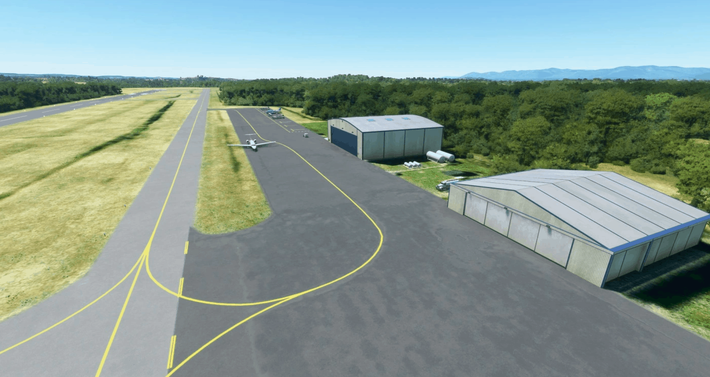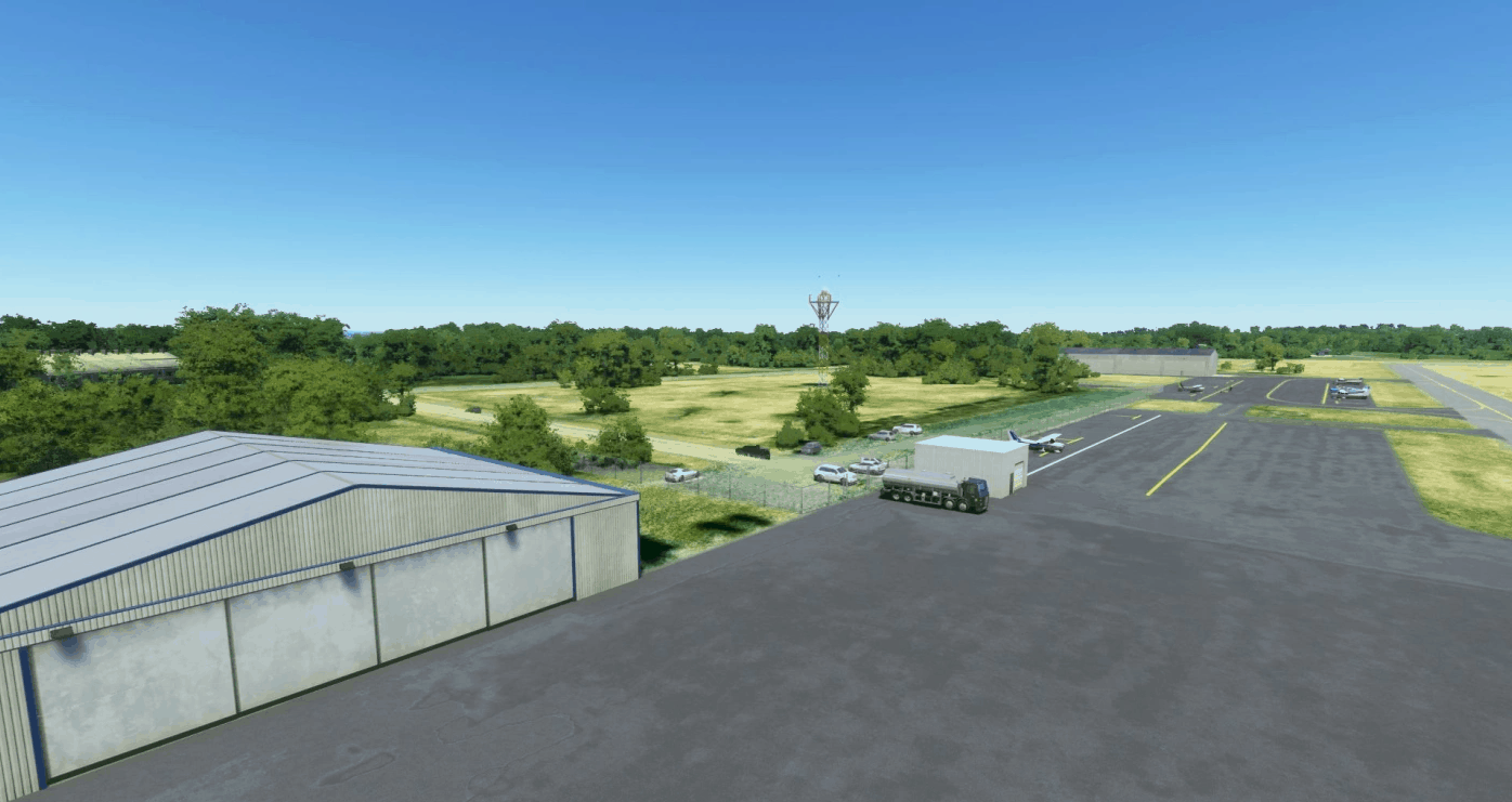 Building at SW end of airport removed and replace with proper hangar and tarmac