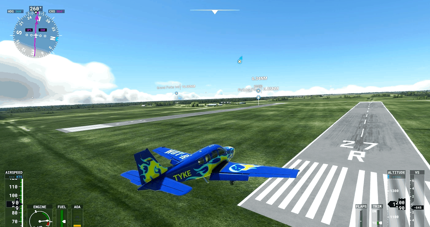 Pribbs field in East Grand Forks, Minnestota, North Dakota has two grass airstrips. I have converted these into two 2400ft asphalt airstrips making them large enough to land larger GA aircraft . I have also added a helicopter landing pad in a suitable position for easy approaches near to the terminal buildings. The airport elevation is 817ft with flat terrain and an easy approach.