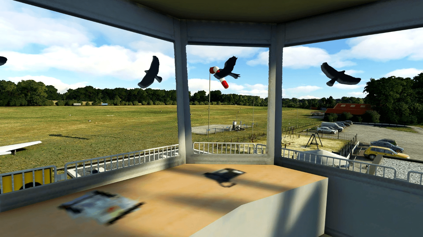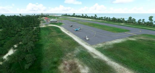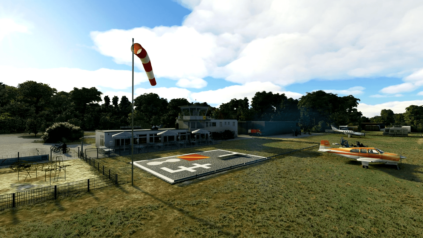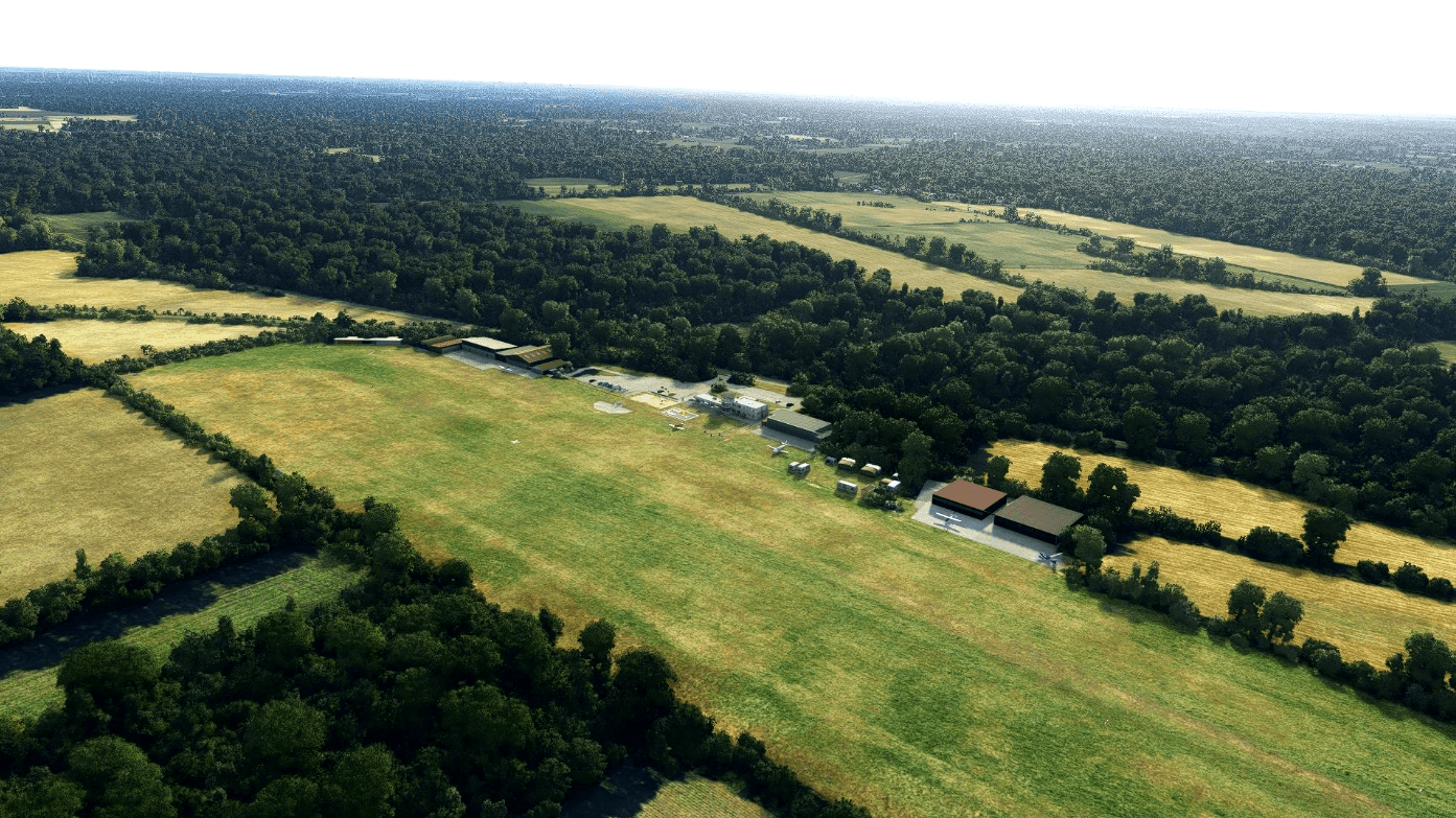 – Tuned vegetation placement around the airfield, including low grass on the airfield itself