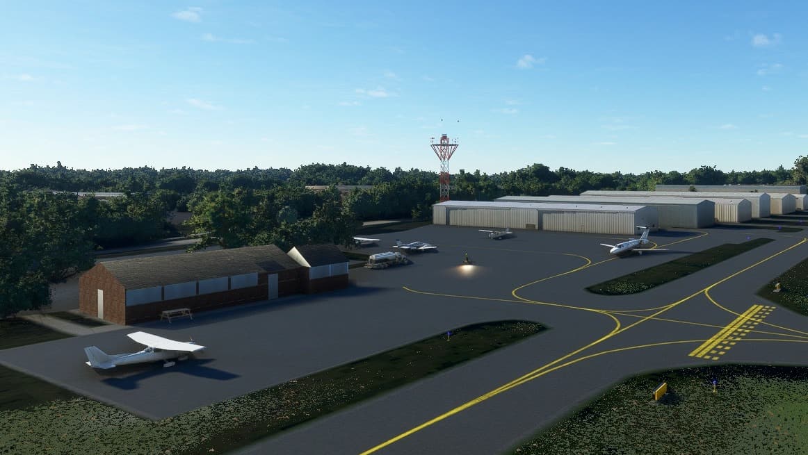 KOQN is a regional GA airport 10 miles west of Philadelphia, Pennsylvania. The MSFS version is horrible so I hand modeled the fbo. See the before and after photos. Also moved the Beacon to its correct location, fixed some vegetation, added fuel trucks and some aircraft. If I get better at Blender and terraforming I might fix the carpark side of the fbo. As it is not manned after 5pm I didn’t include window lighting.
