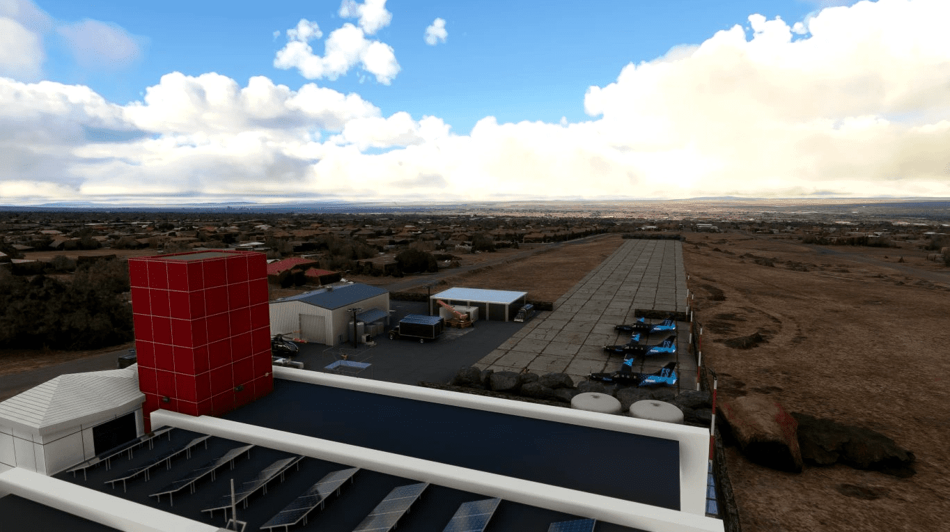 Hier der nächste fiktive Airport (ICAO “MB03”) mit kurzem Runway und einem Parkplatz. Er liegt im nördlichen Albuquerque im US Bundesstaat New Mexico.